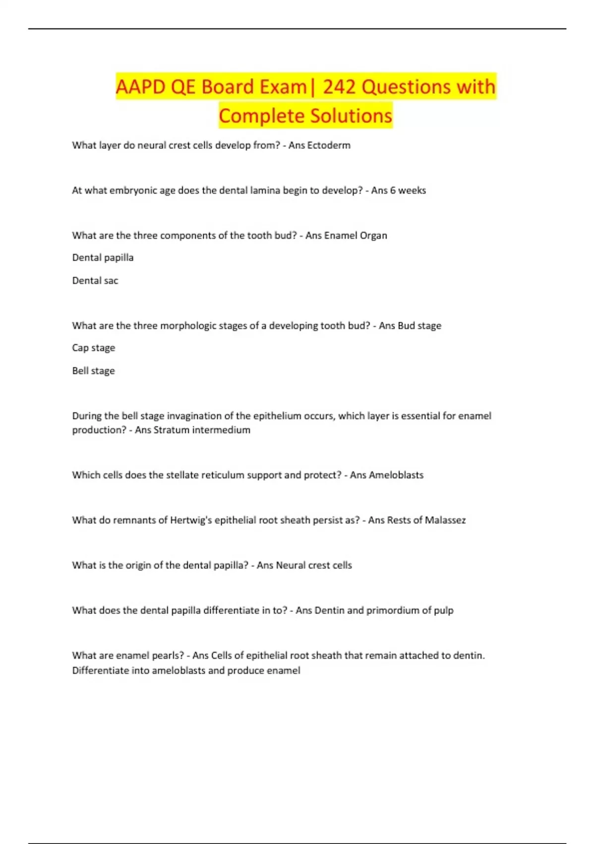 AAPD QE Board Exam| 242 Questions with Complete Solutions