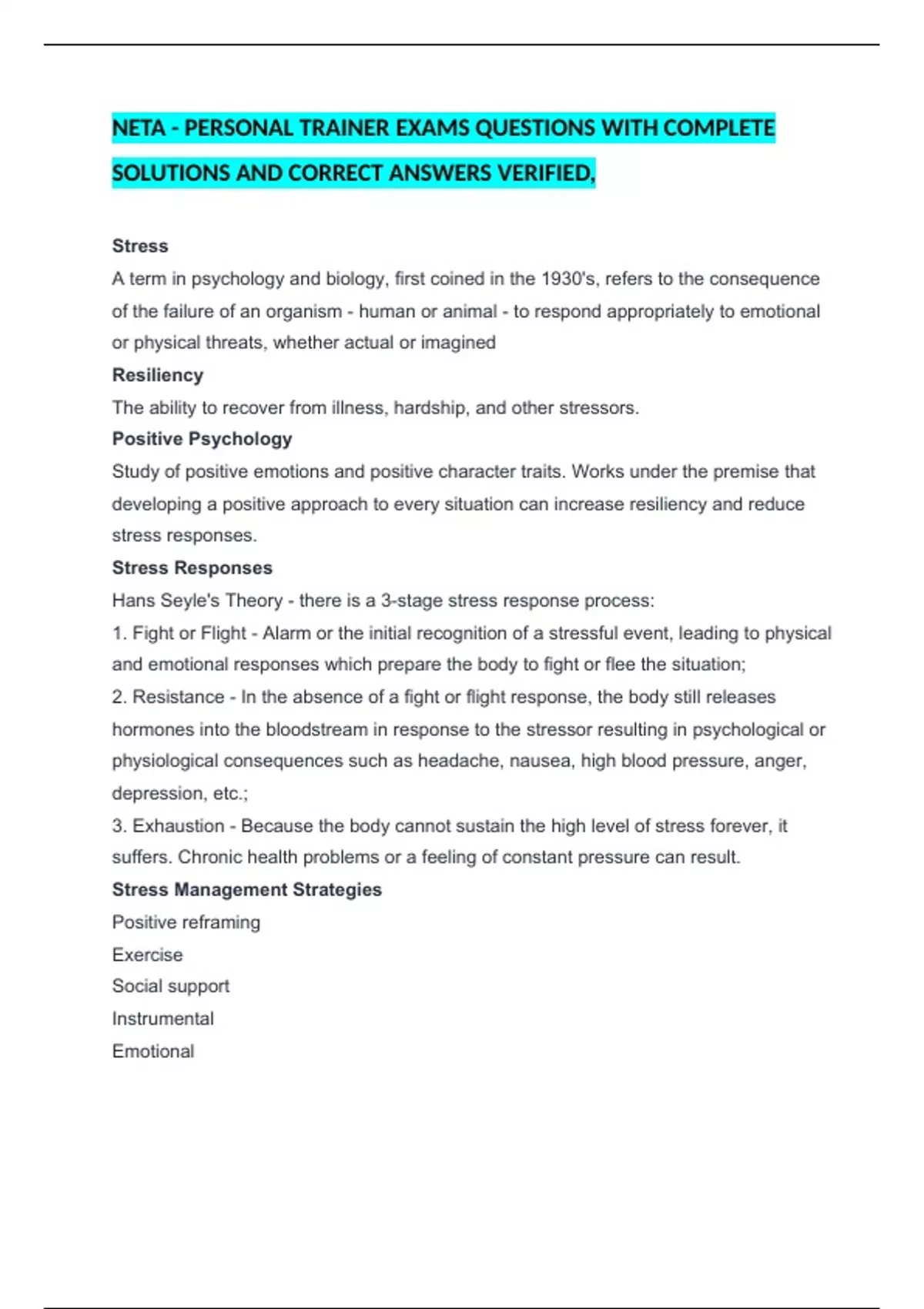 2. Resistance - In the absence of a fight or flight response, the body still releases
