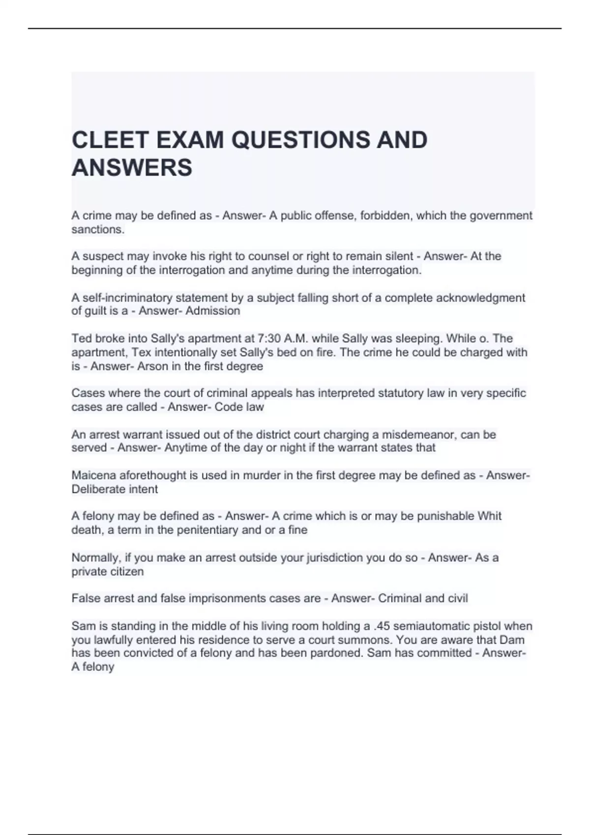 CLEET EXAM QUESTIONS AND ANSWERS