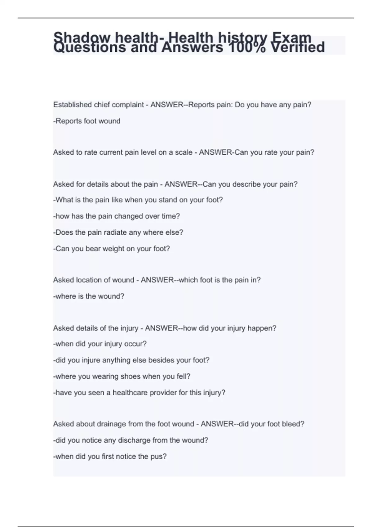 Shadow health- Health history Exam Questions and Answers 100% Verified