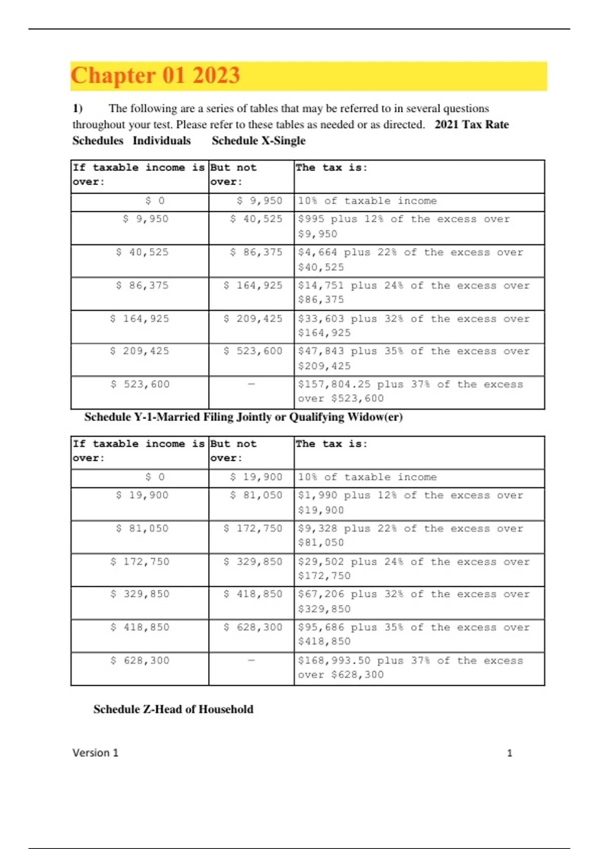 Schedule Z-Head of Household
