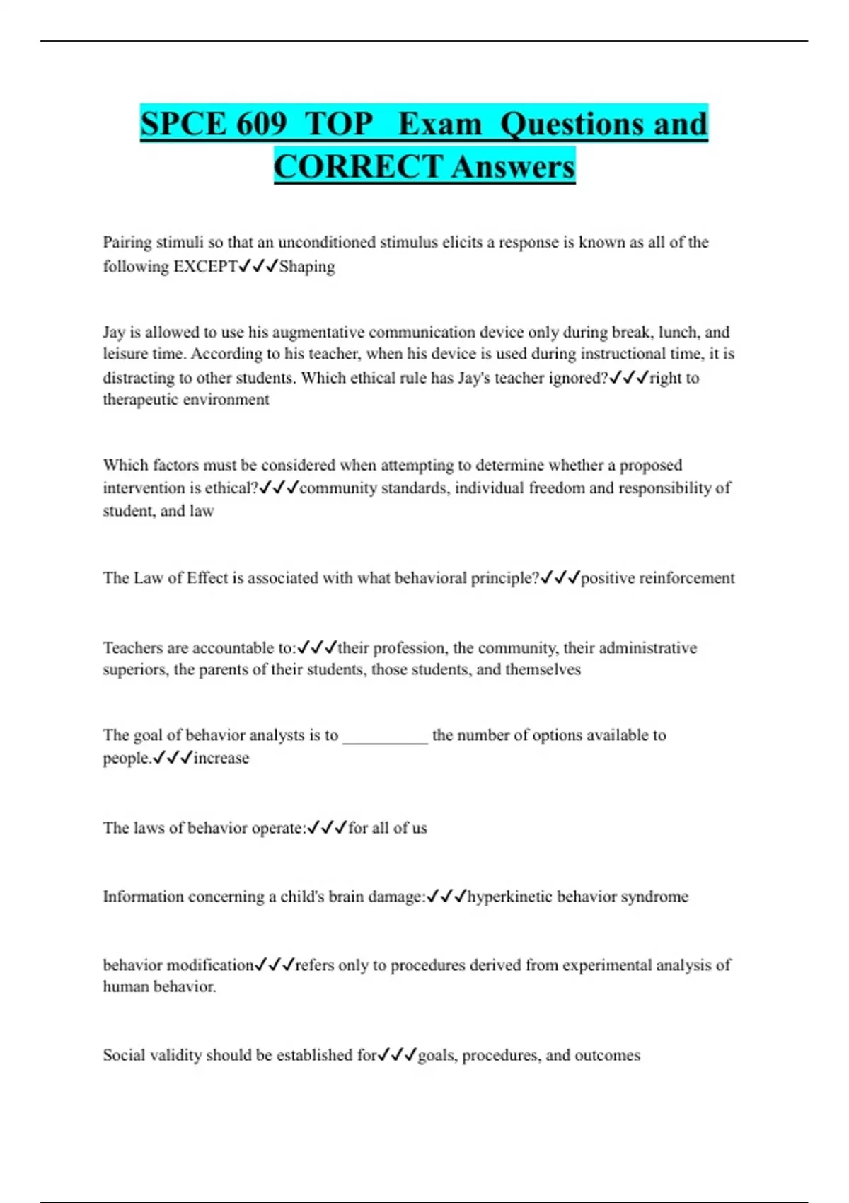SPCE 609 TOP Exam Questions and CORRECT Answers