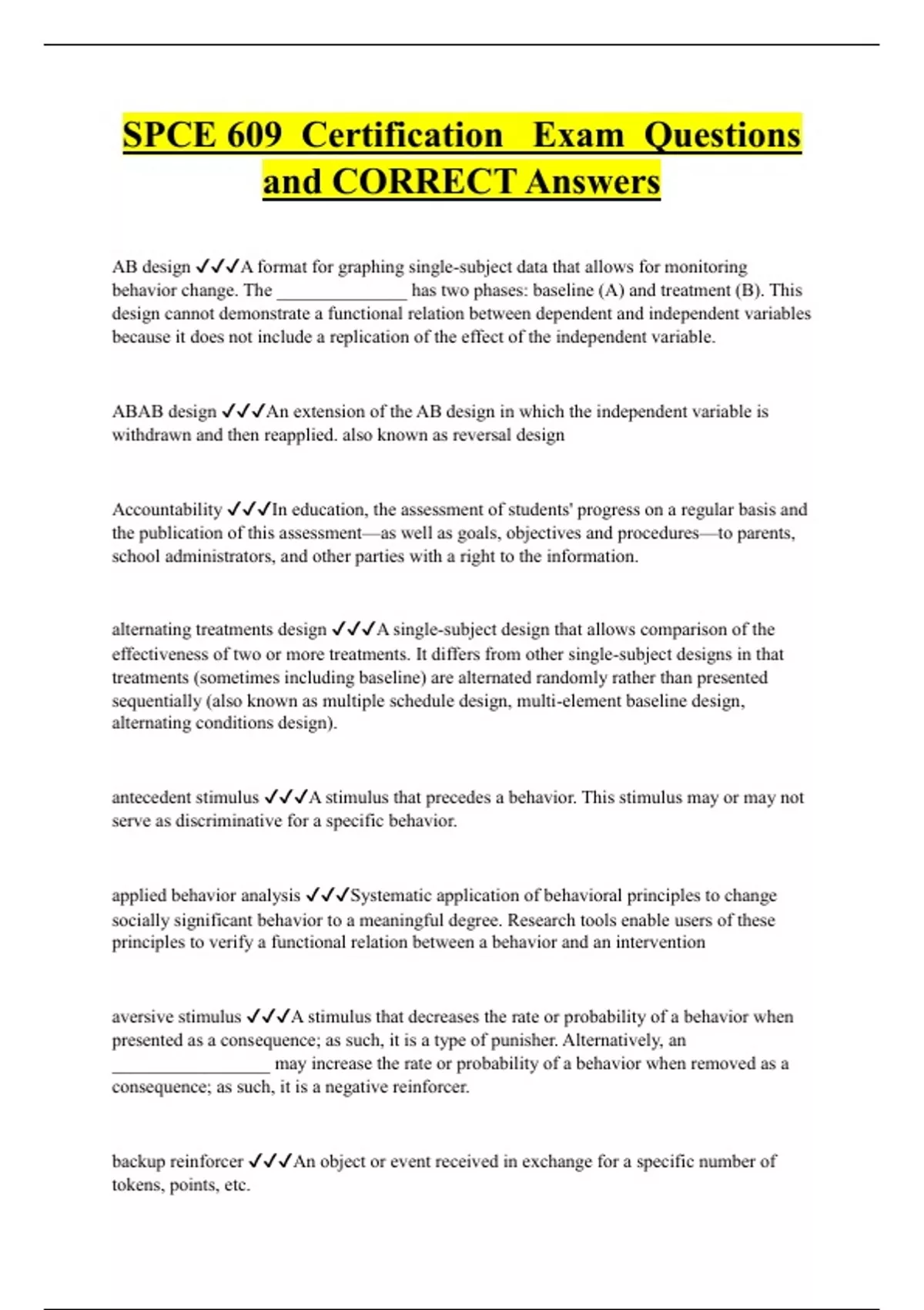 SPCE 609 Certification Exam Questions and CORRECT Answers