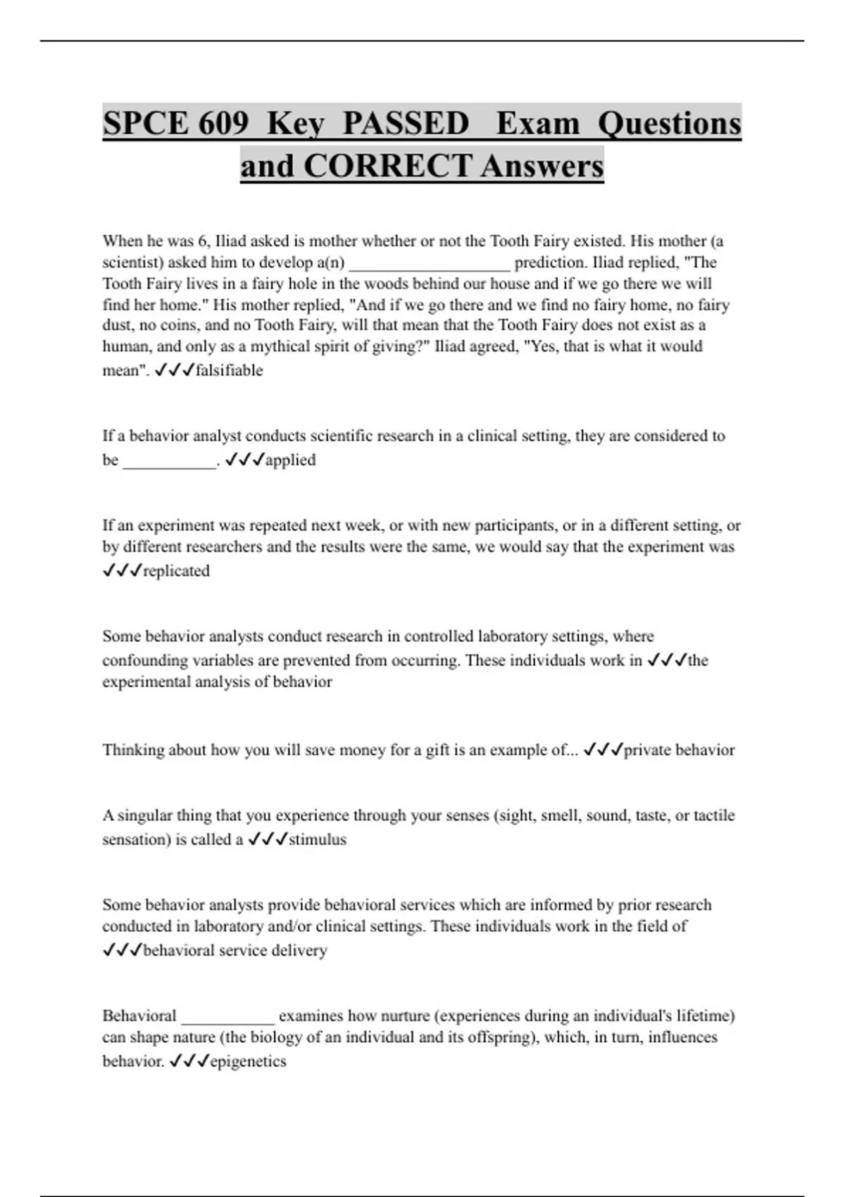 SPCE 609 Key PASSED Exam Questions and CORRECT Answers