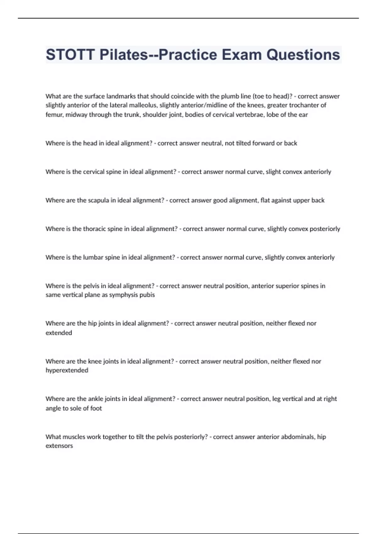 STOTT Pilates--Practice Exam Questions and answers certified 2024