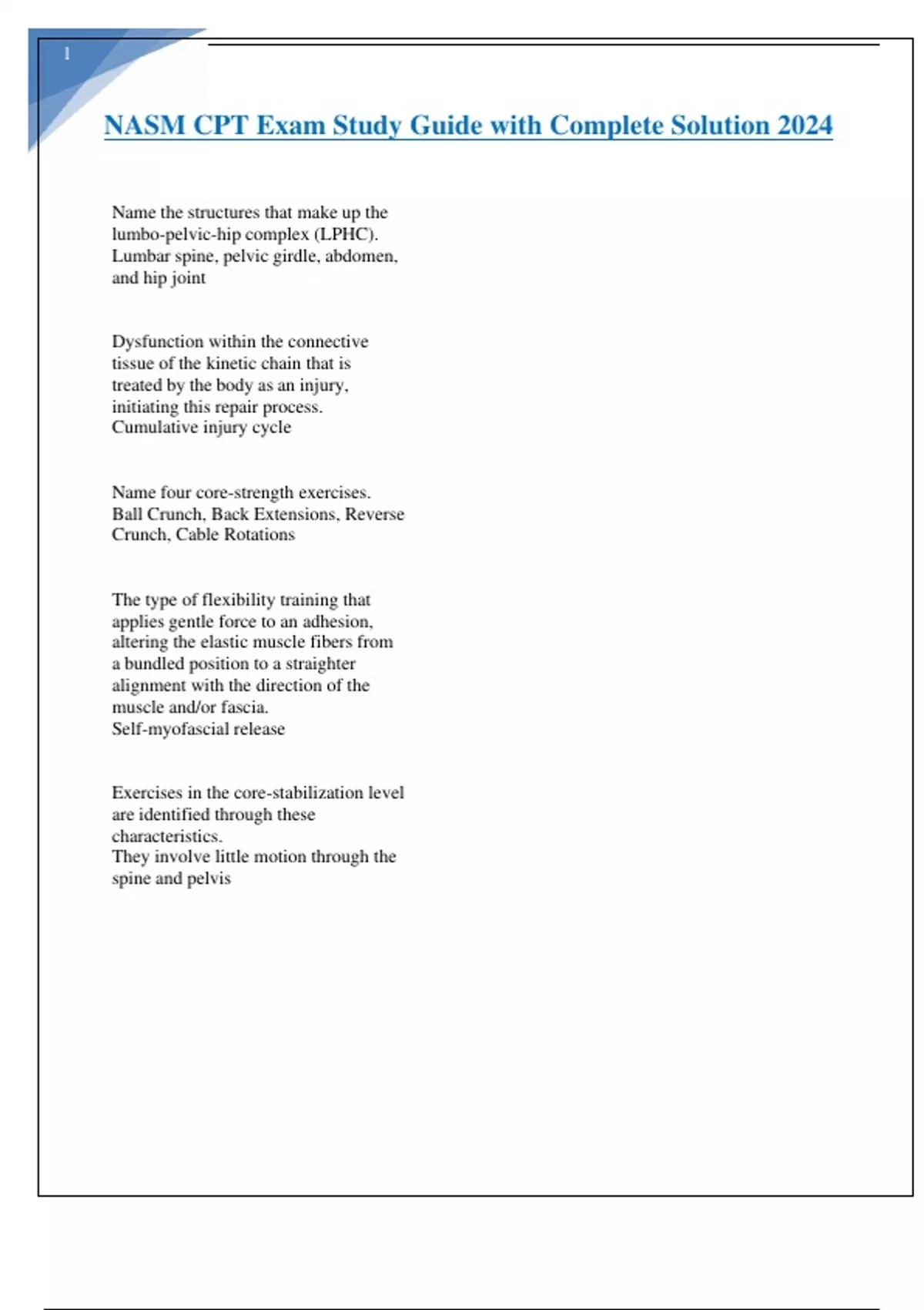 NASM CPT Exam Study Guide with Complete Solution 2024.