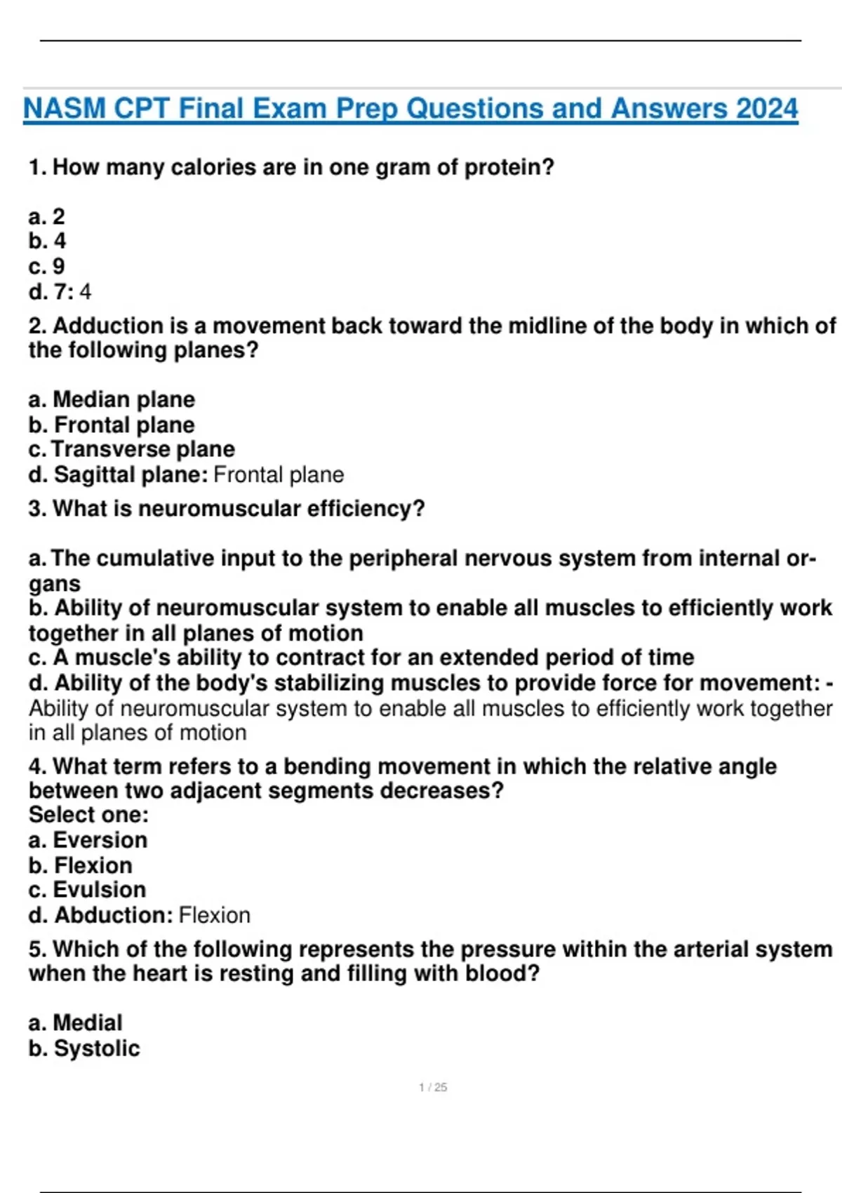 NASM CPT Final Exam Prep Questions and Answers 2024.