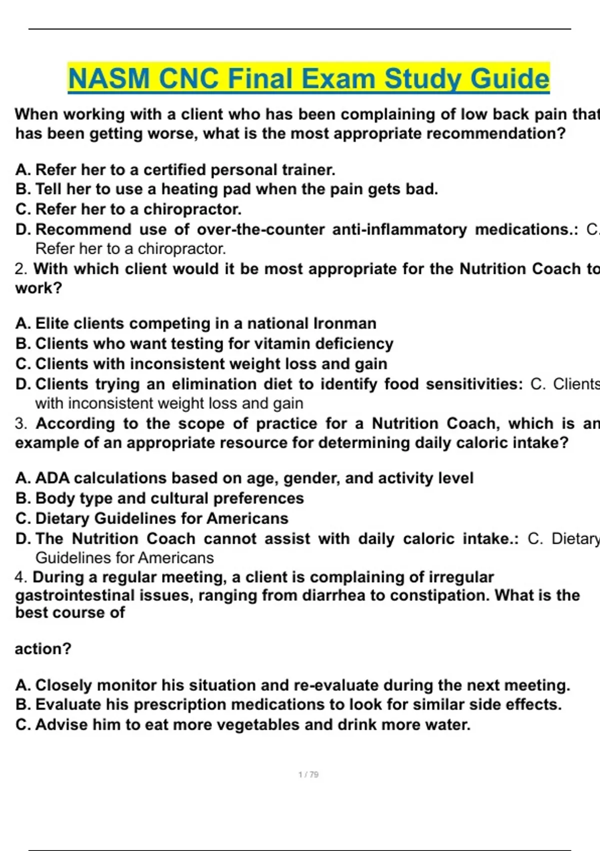 NASM CNC Final Exam Study Guide