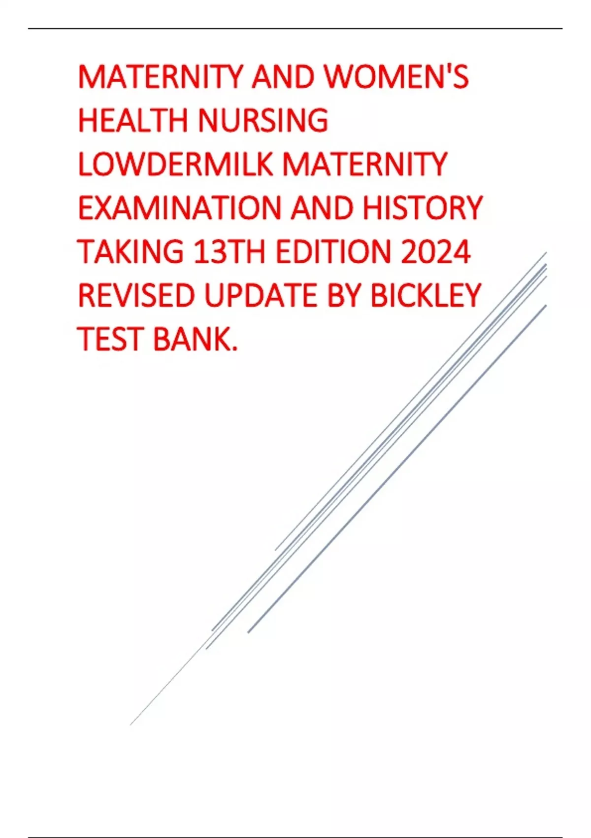 MATERNITY AND WOMEN'S HEALTH NURSING LOWDERMILK MATERNITY EXAMINATION AND HISTORY TAKING 13TH EDITION 2024 REVISED UPDATE BY BICKLEY TEST BANK..pdf