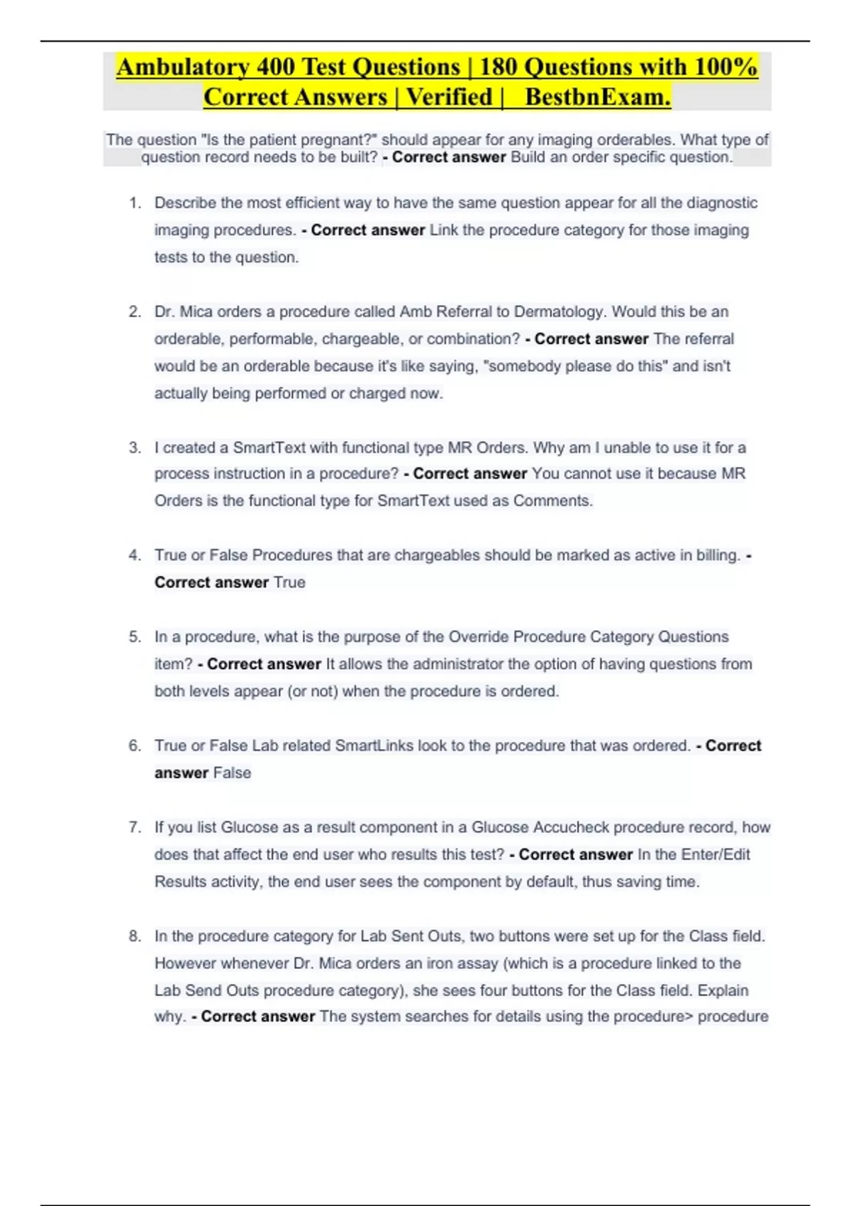 ambulatory 400 test questions 180 questions with