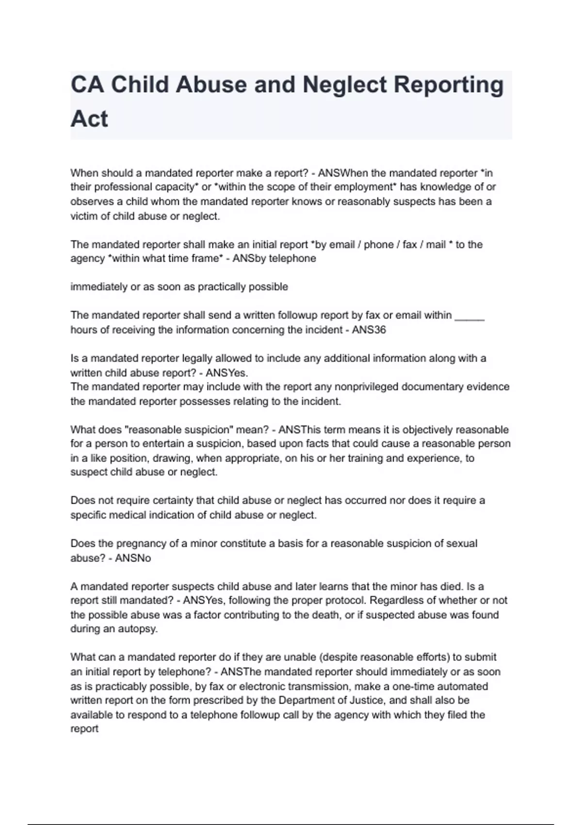 CA Child Abuse and Neglect Reporting Act NEWEST 2026/2027 ACTUAL EXAM COMPLETE QUESTIONS AND CORRECT DETAILED ANSWERS (VERIFIED ANSWERS) |ALREADY GRADED A+||BRAND NEW!!