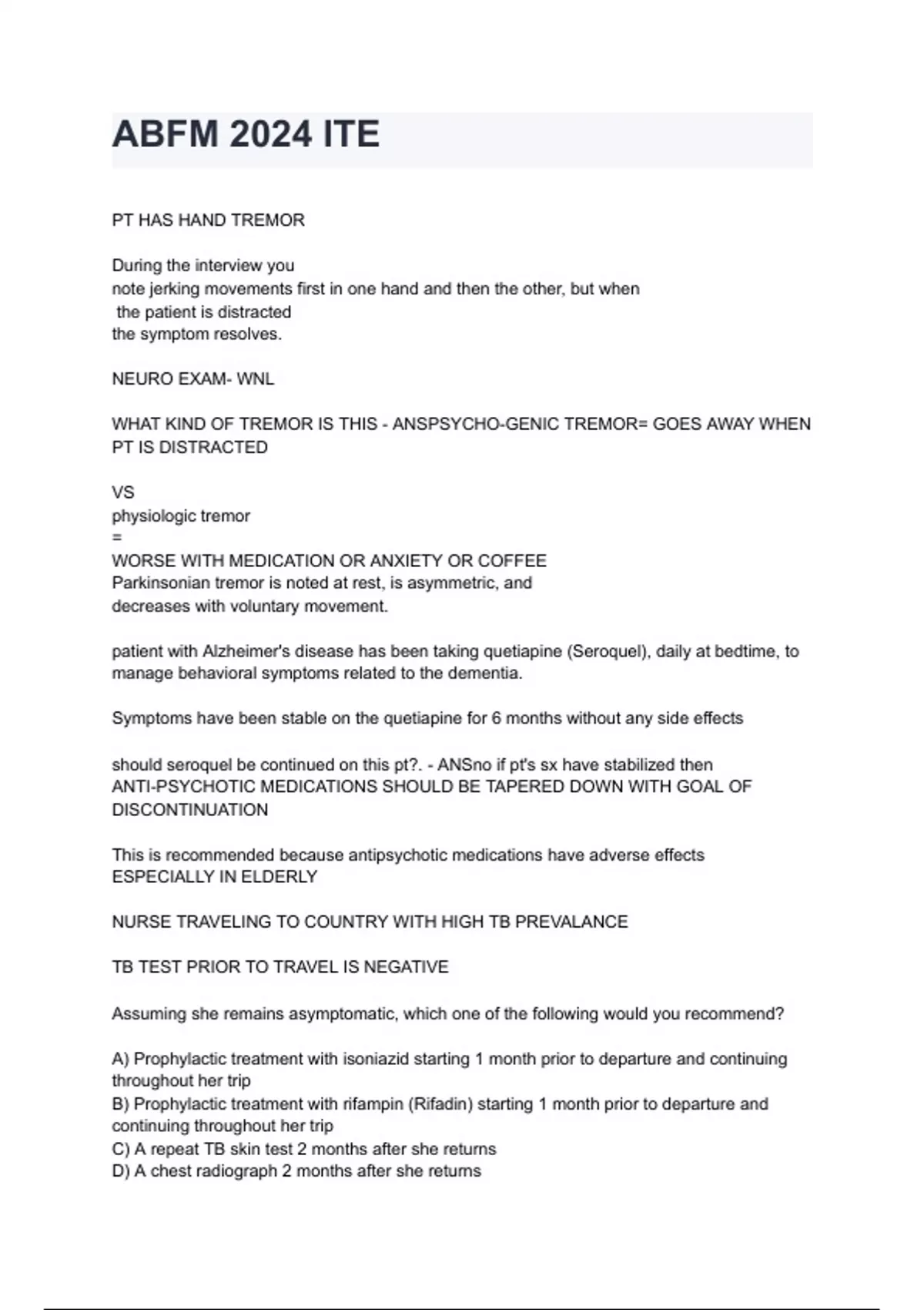 ABFM 2024 ITE questions and answers graded A+ by experts
