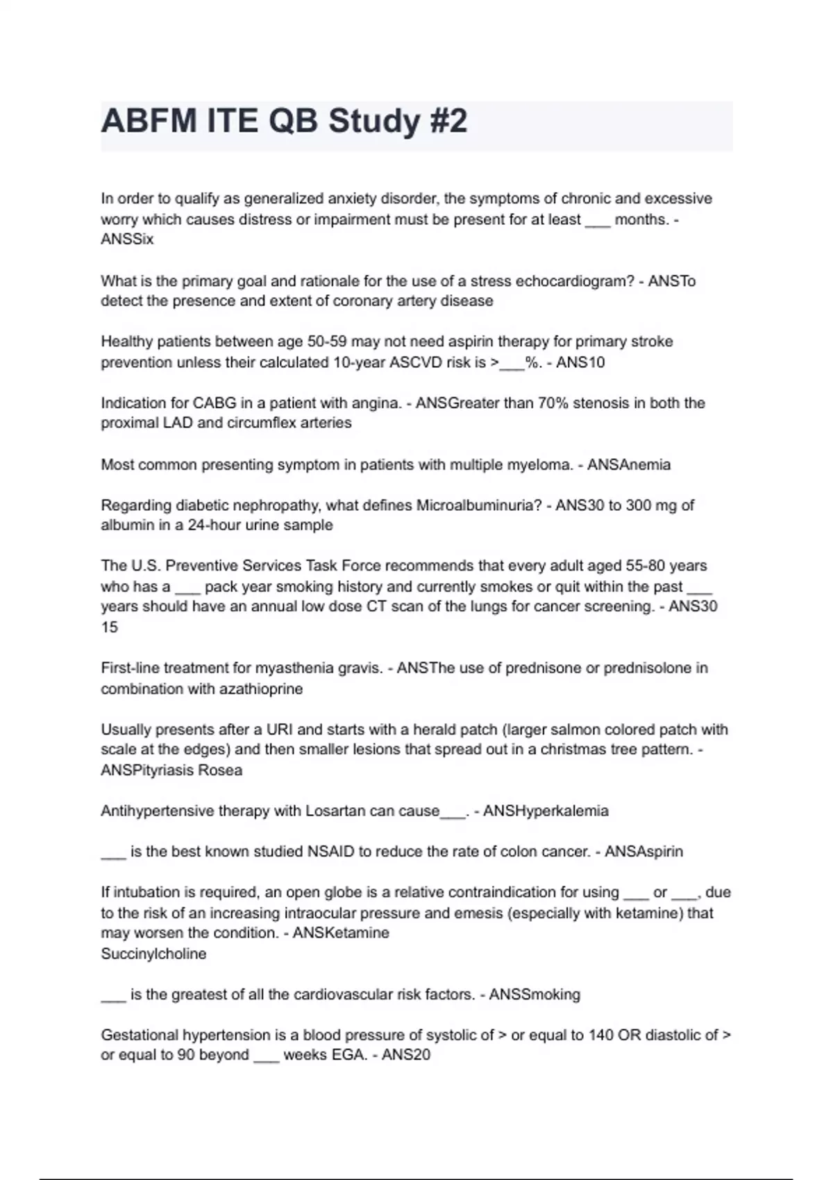 ABFM ITE QB Study #2 questions and answers graded A+ by experts 2024/2025