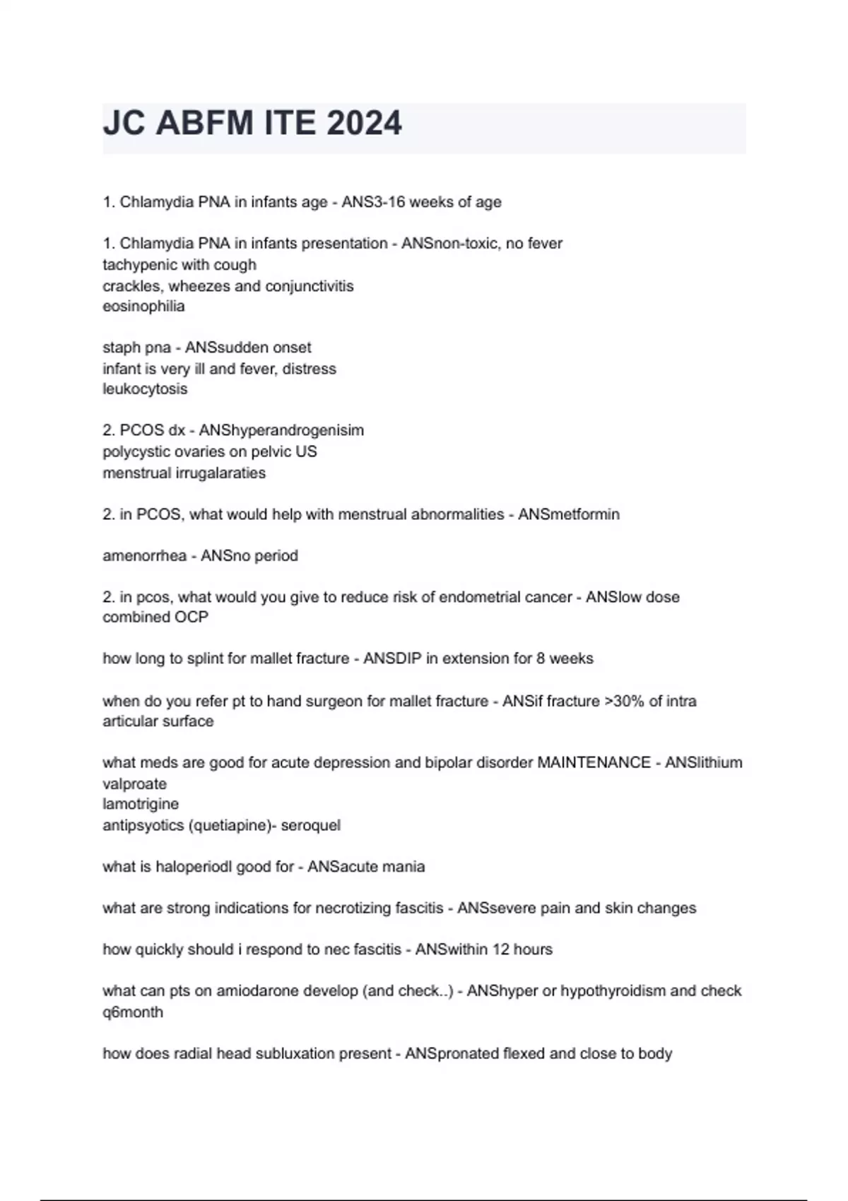 JC ABFM ITE 2024 questions and answers graded A+ by experts