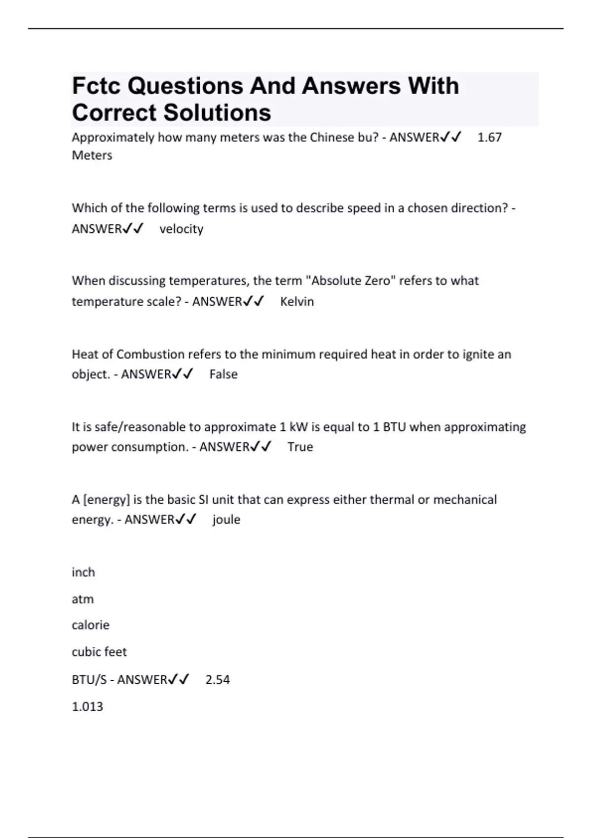 Fctc Questions And Answers With Correct Solutions