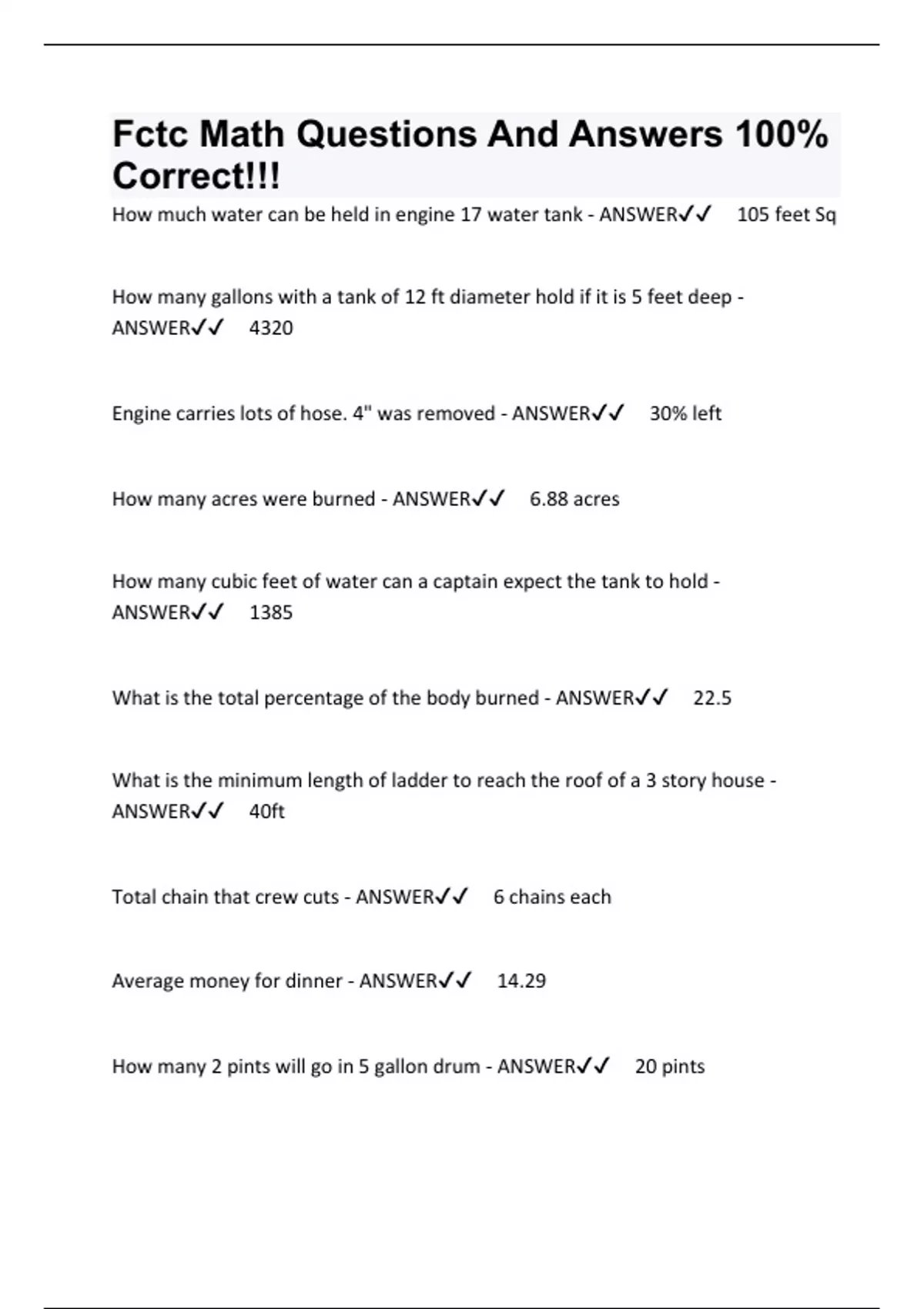 Fctc Math Questions And Answers 100% Correct!!!