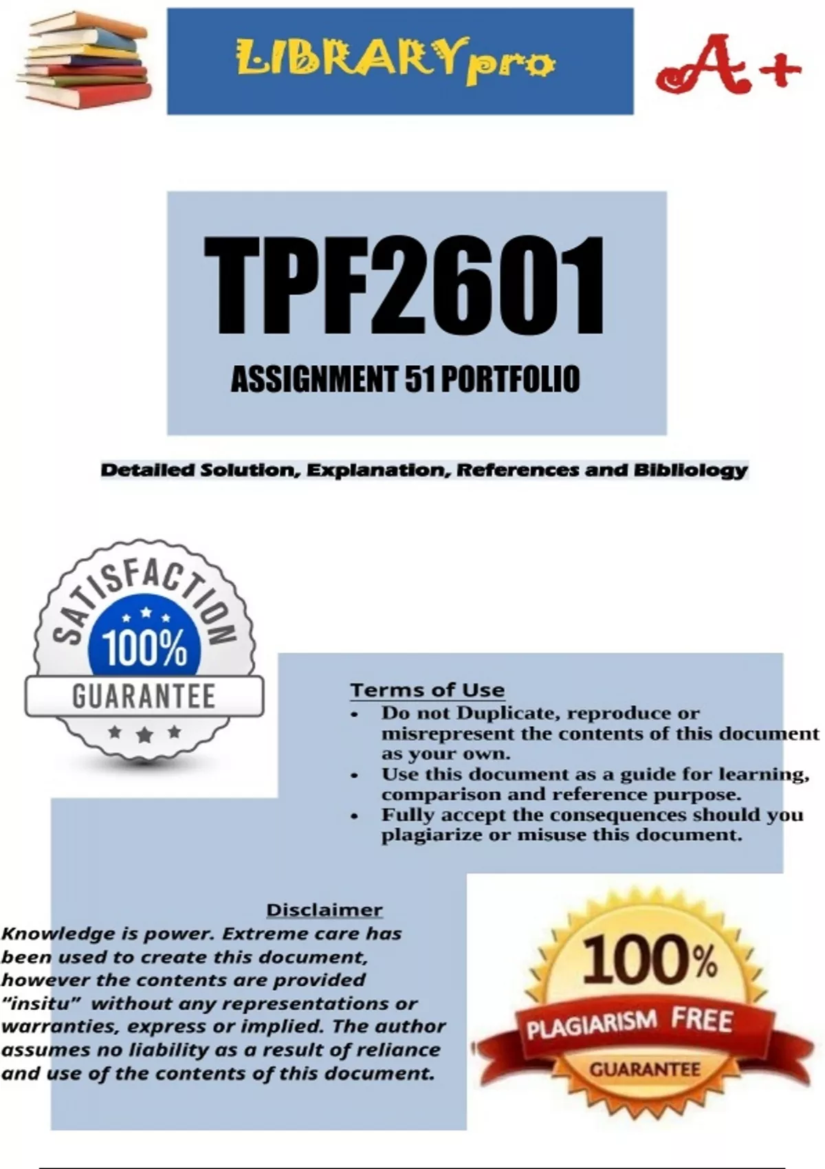TPF2601 Assignment 51 Portfolio 2024 ;100 % TRUSTED workings, explanations and solutions. For assistance call or W.h.a.t.s.a.p.p us on ...(.+.2.5.4.7.7.9.5.4.0.1.3.2)...........