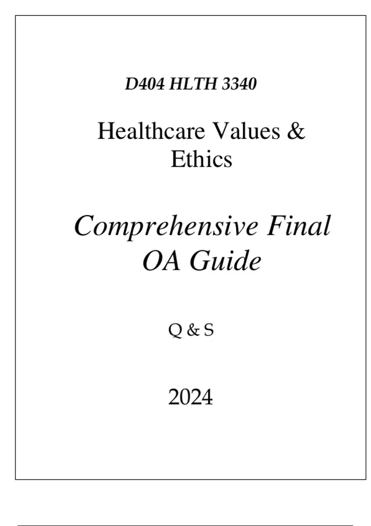 (WGU D404) HLTH 3340 HEALTHCARE VALUES & ETHICS COMPREHENSIVE FINAL OA GUIDE(WGU D404) HLTH 3340 HEALTHCARE VALUES & ETHICS COMPREHENSIVE FINAL OA GUIDE