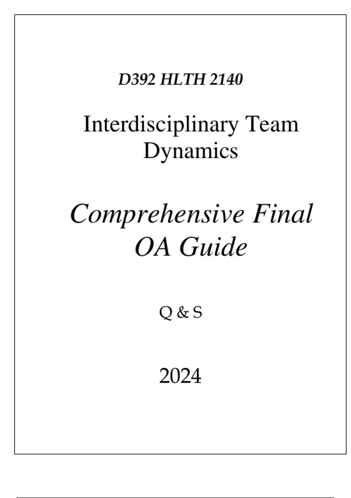 (WGU D392) HLTH 2140 INTERDISCIPLINARY TEAM DYNAMICS COMPREHENSIVE FINAL OA GUIDE(WGU D392) HLTH 2140 INTERDISCIPLINARY TEAM DYNAMICS COMPREHENSIVE FINAL OA GUIDE(WGU D392) HLTH 2140 INTERDISCIPLINARY TEAM DYNAMICS COMPREHENSIVE FINAL OA GUIDE