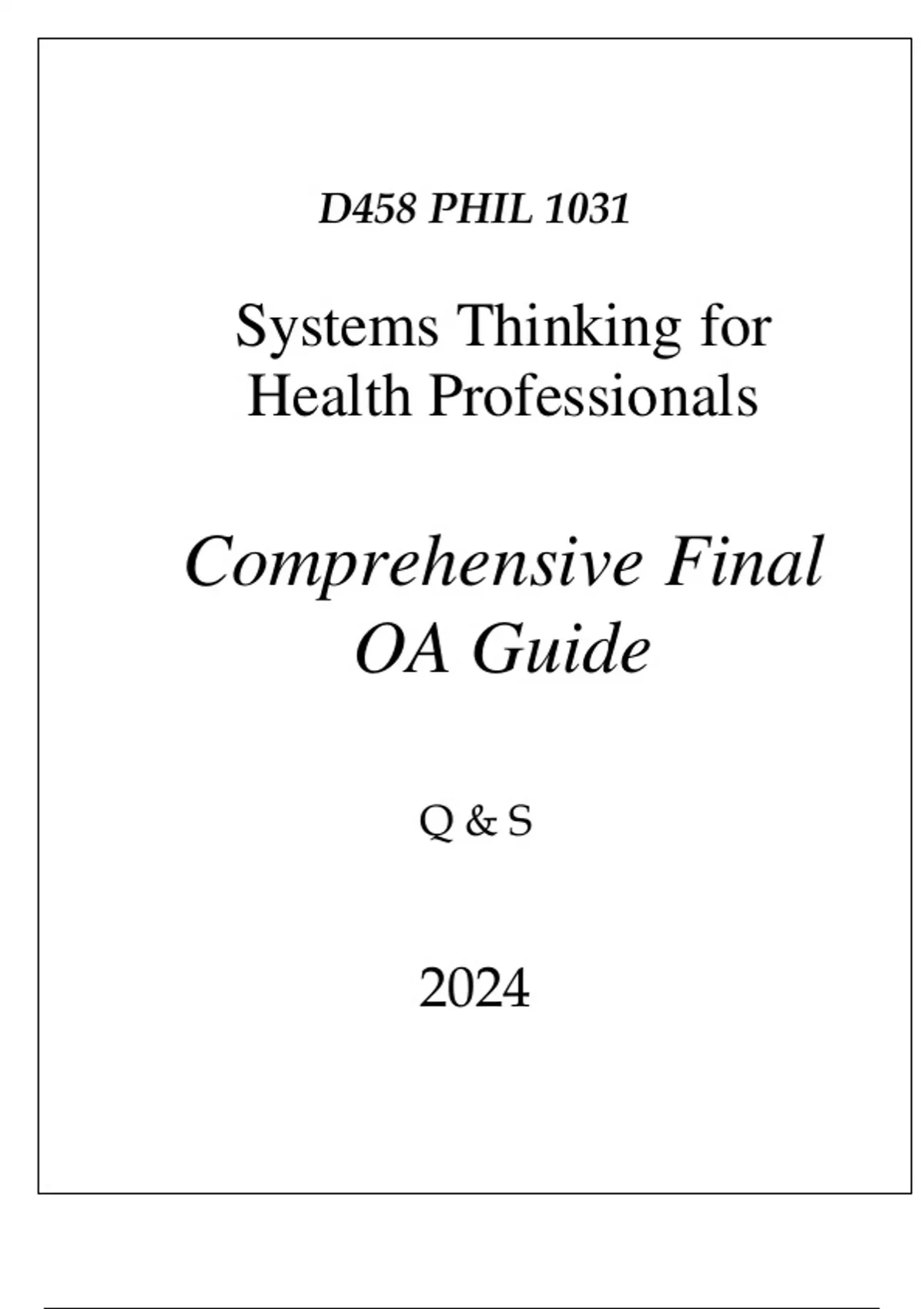 (WGU D458) PHIL 1031 SYSTEMS THINKING FOR HEALTH PROFESSIONALS COMPREHENSIVE FINAL(WGU D458) PHIL 1031 SYSTEMS THINKING FOR HEALTH PROFESSIONALS COMPREHENSIVE FINAL(WGU D458) PHIL 1031 SYSTEMS THINKING FOR HEALTH PROFESSIONALS COMPREHENSIVE FINAL