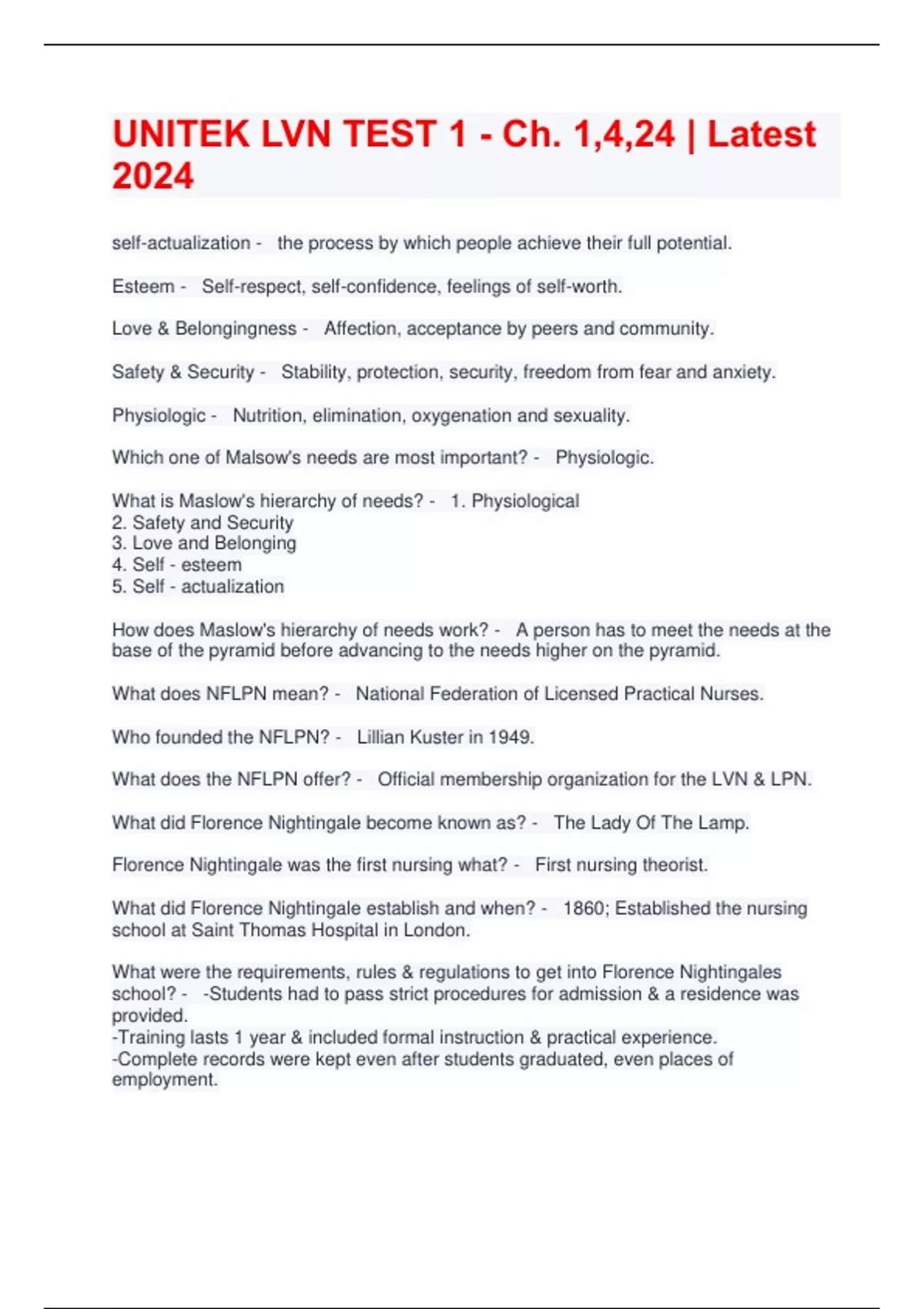 UNITEK LVN TEST 1 - Ch. 1,4,24 | Latest 2024
