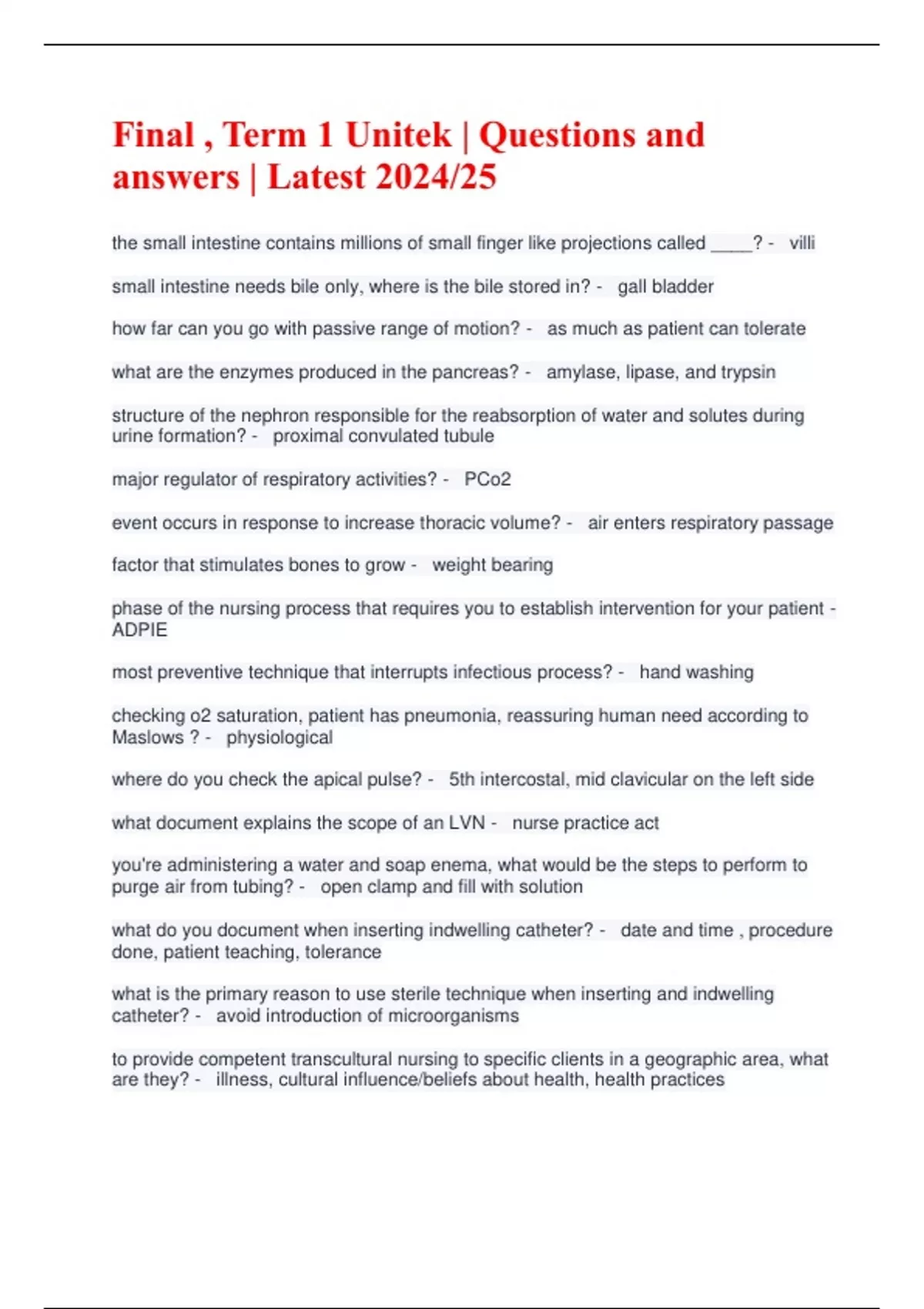 Final , Term 1 Unitek | Questions and answers | Latest 2024/25