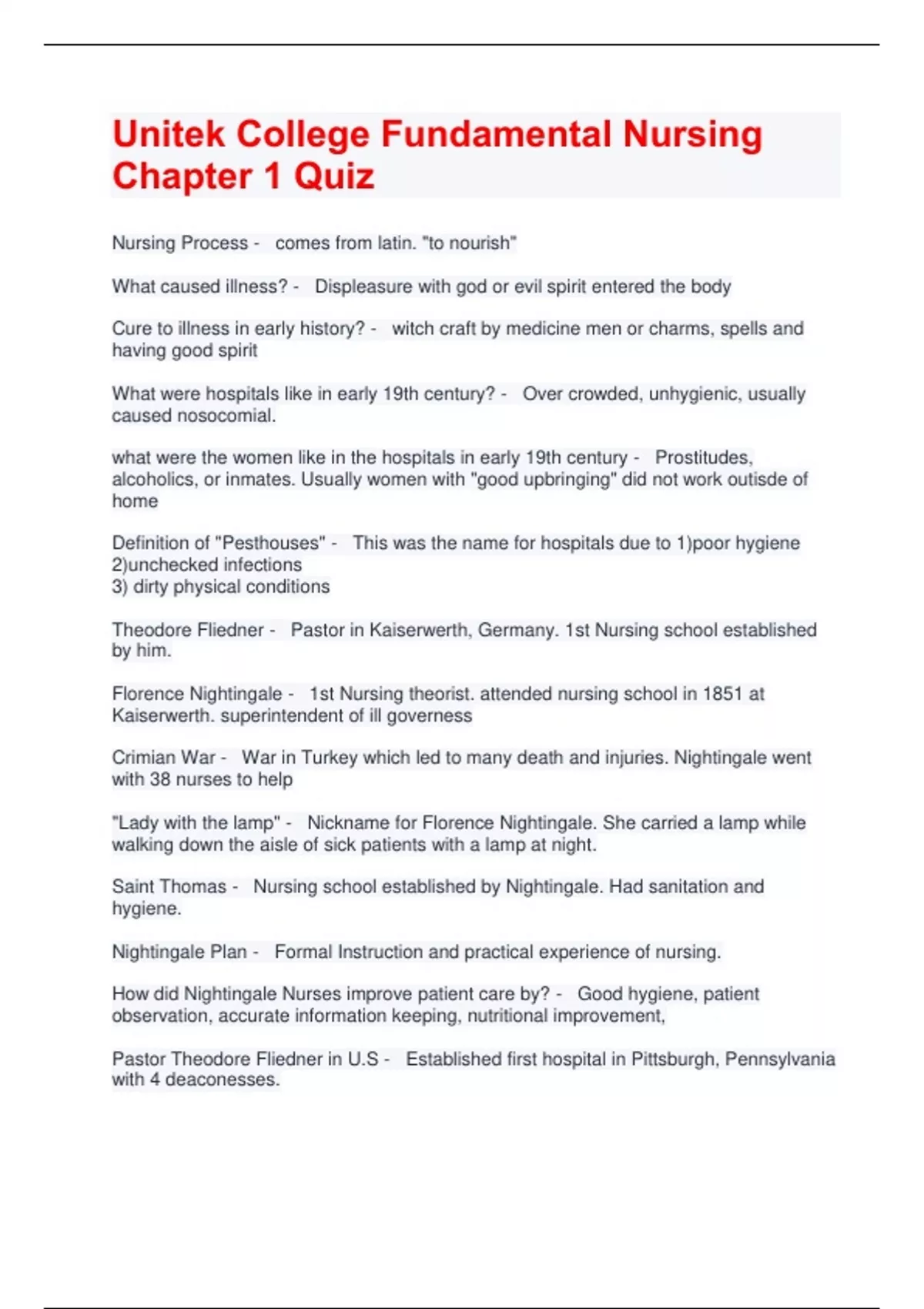 unitek college fundamental nursing chapter 1 quiz