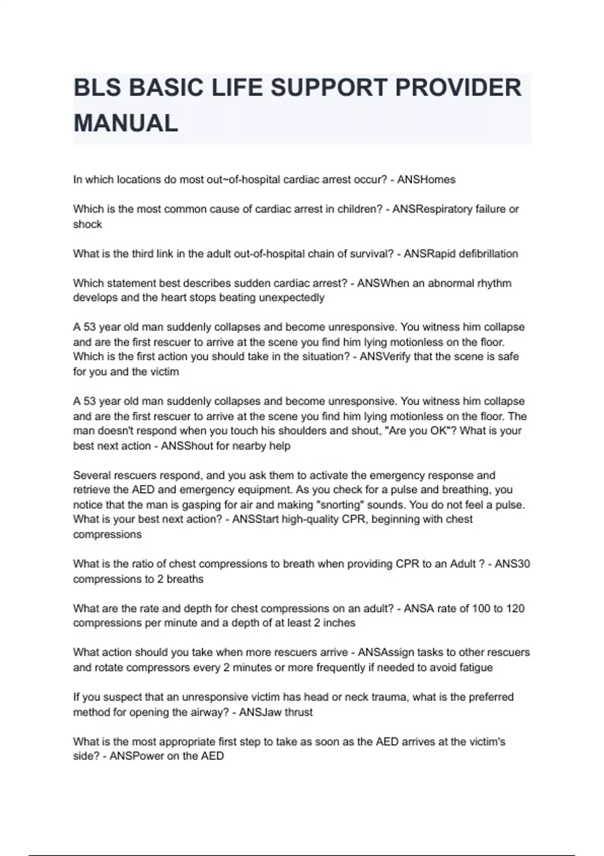 BLS BASIC LIFE SUPPORT PROVIDER MANUAL questions and answers graded A+ by experts 2024/2025