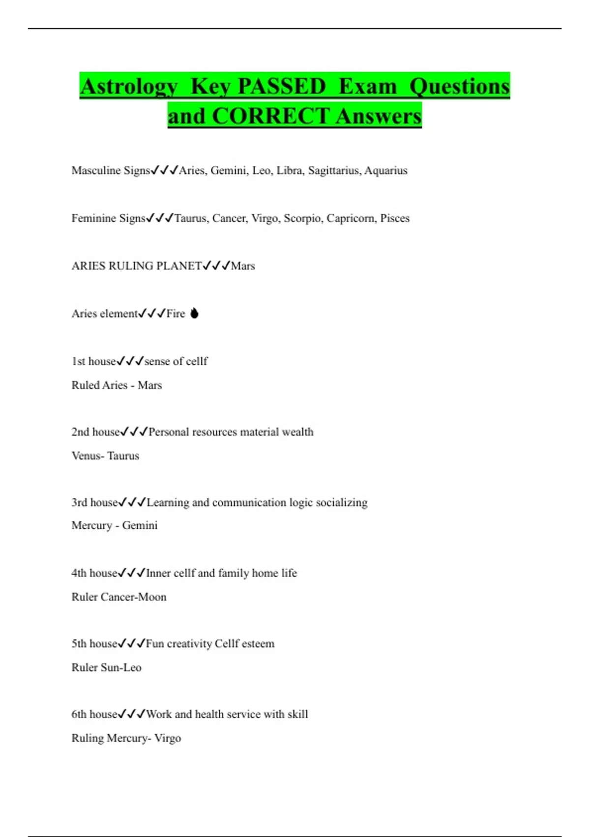 Astrology Key PASSED Exam Questions and CORRECT Answers
