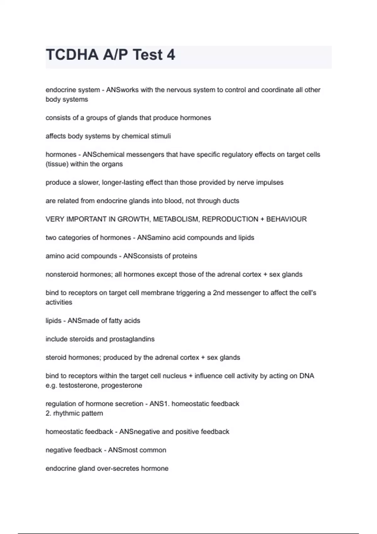 TCDHA A/P Test 4 questions and answers graded A+ by experts 2024/2025