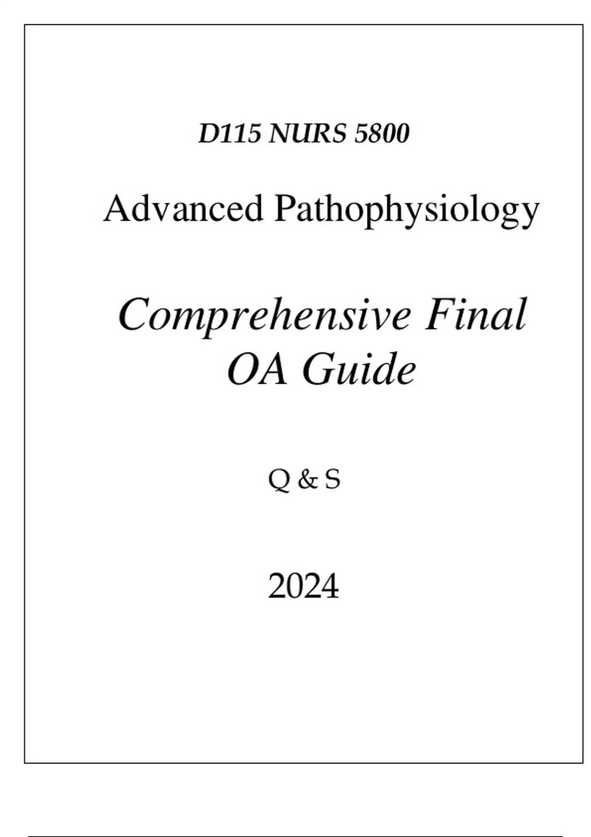 (WGU D115) NURS 5800 ADVANCED PATHOPHYSIOLOGY COMPREHENSIVE FINAL OA