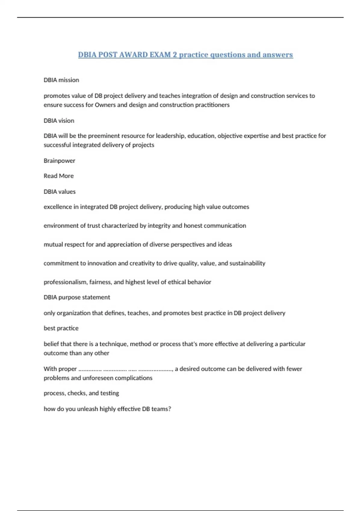 DBIA POST AWARD EXAM 2 practice questions and answers.