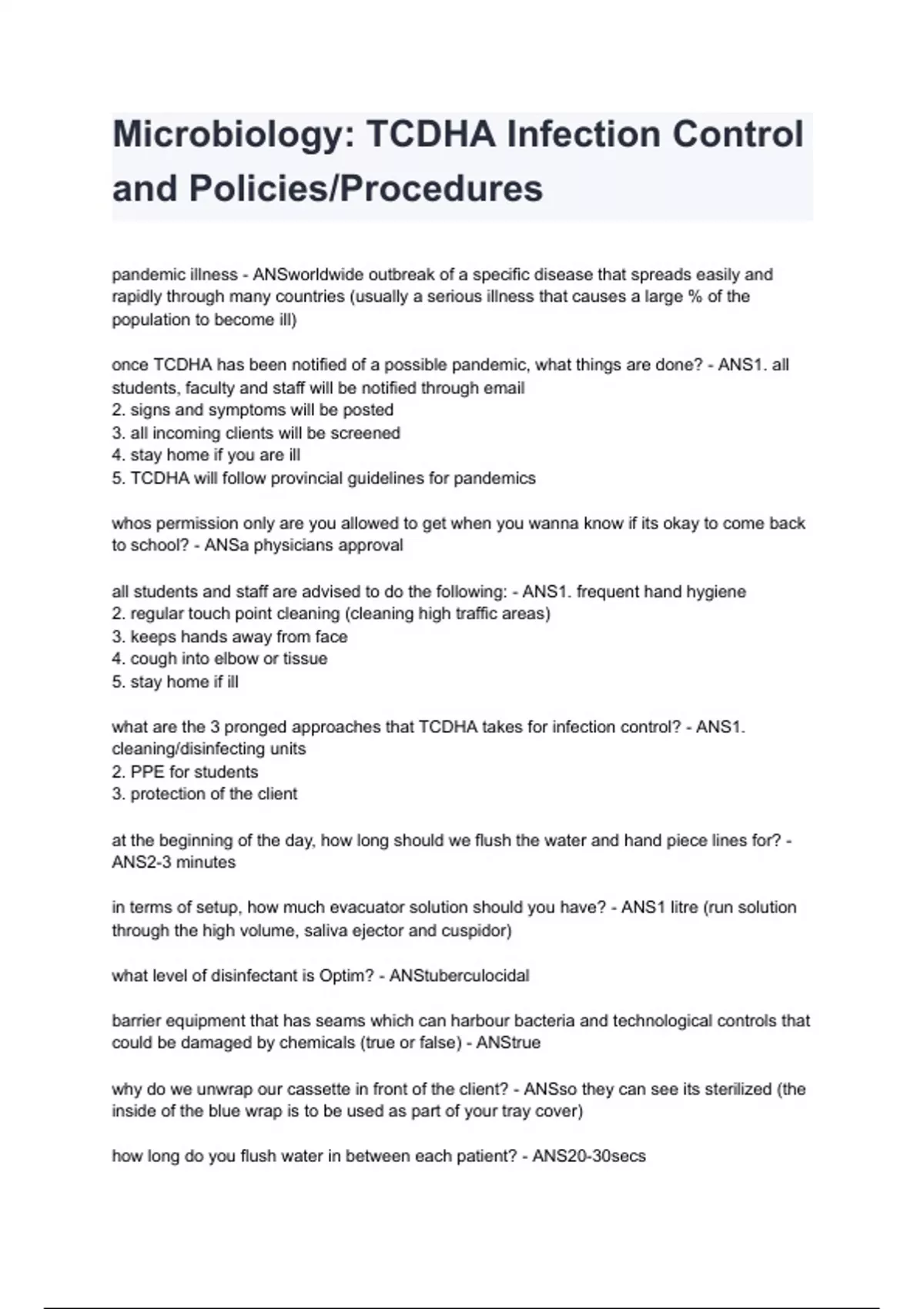 Microbiology: TCDHA Infection Control and Policies/Procedures questions and answers graded A+ by experts 2024/2025