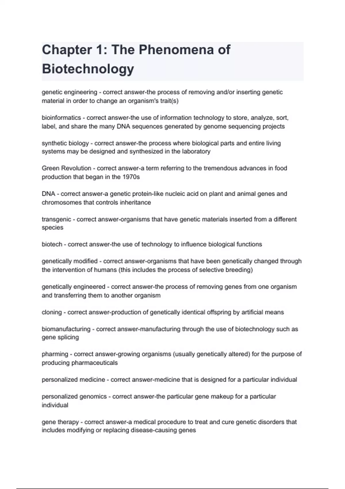 Chapter 1 The Phenomena of Biotechnology with complete solution