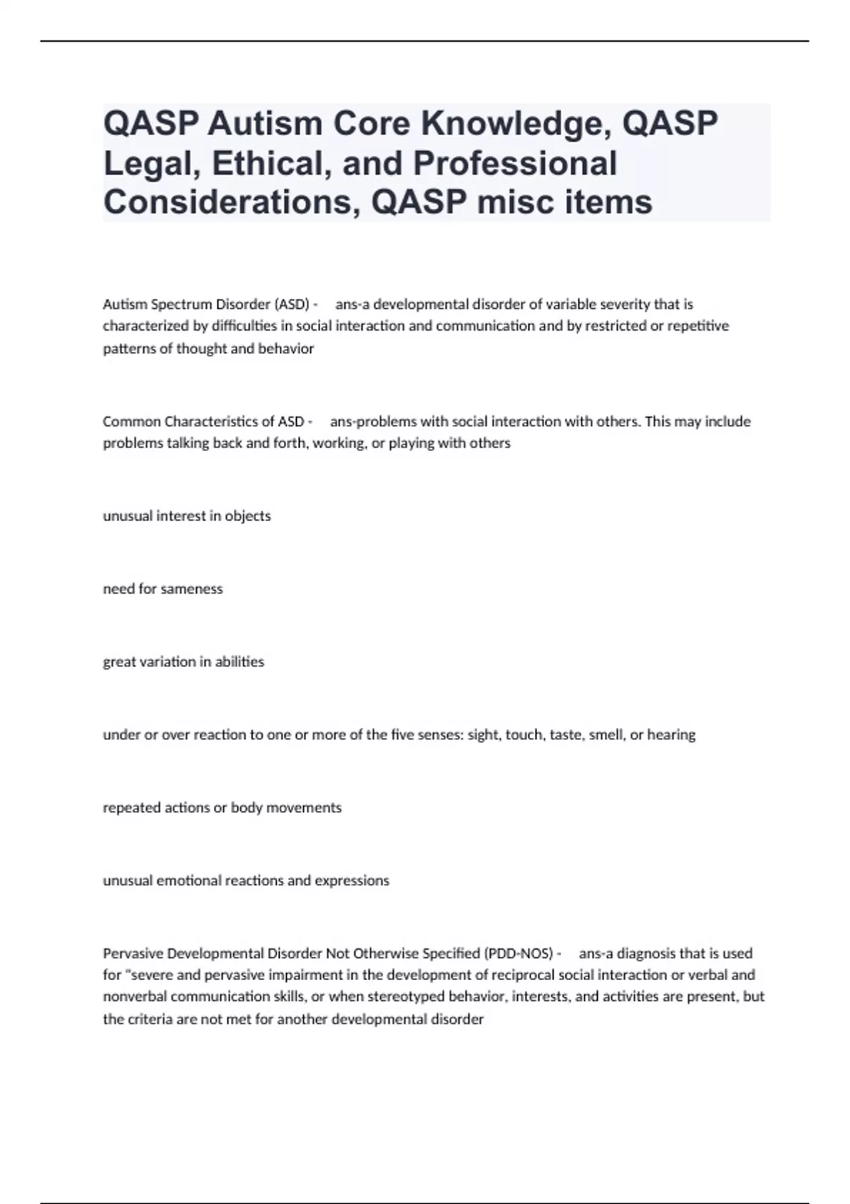 QASP Autism Core Knowledge, QASP Legal, Ethical, and Professional Considerations, QASP misc items