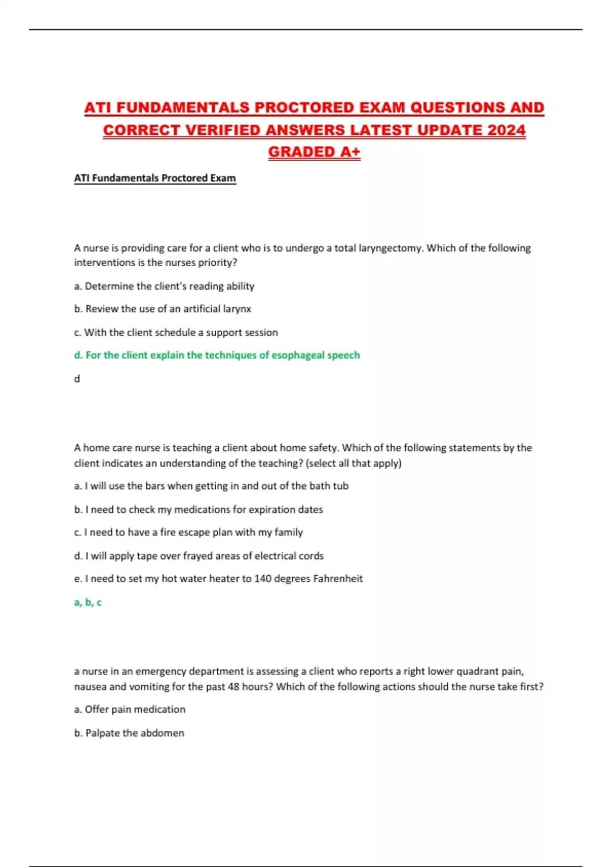 ATI FUNDAMENTALS PROCTORED EXAM QUESTIONS AND CORRECT VERIFIED ANSWERS LATEST UPDATE 2024 GRADED A+