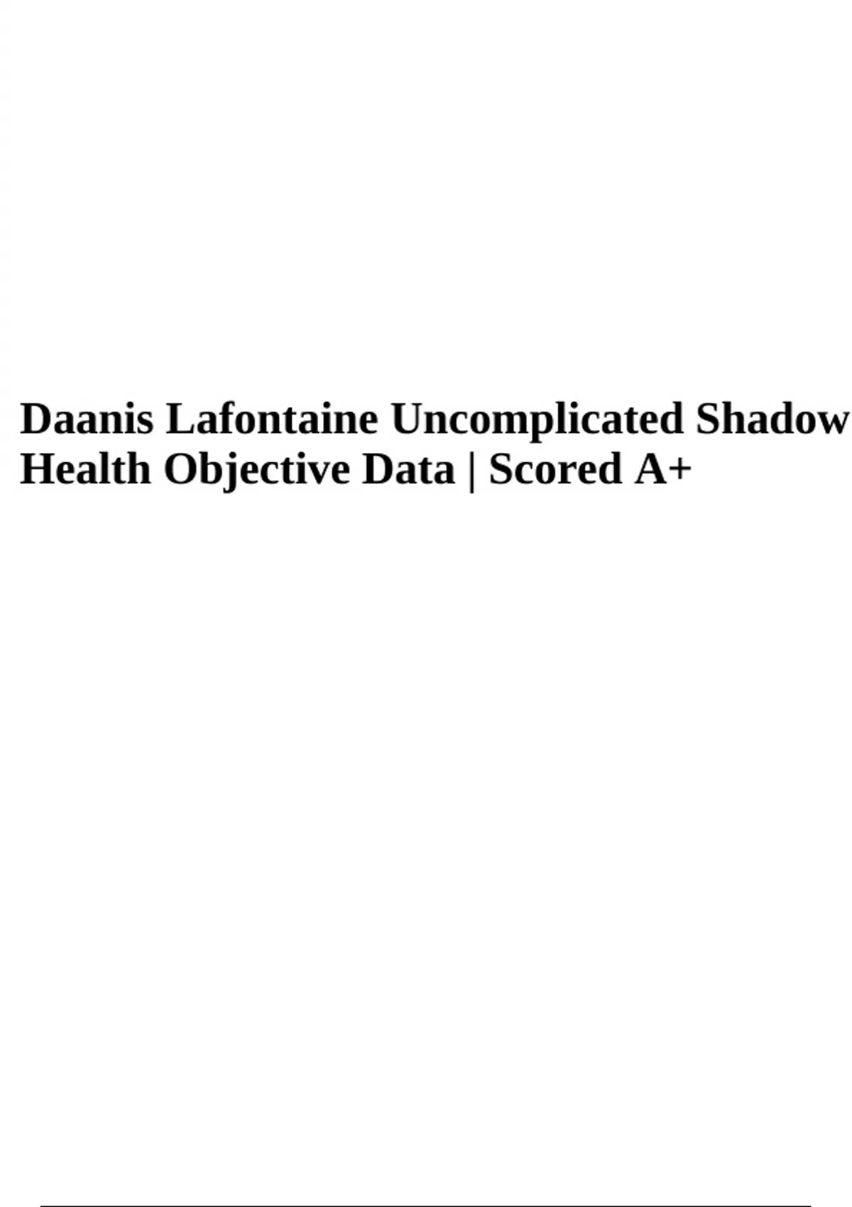 Daanis Lafontaine Uncomplicated Shadow Health Objective Data | Scored A+