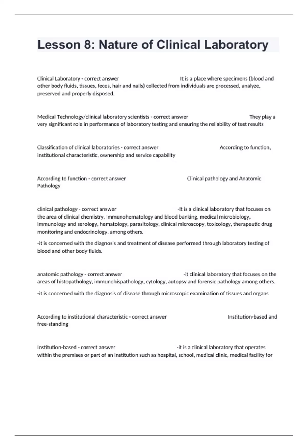 Lesson 8: Nature of Clinical Laboratory Exam Study Questions And Answers Well Elaborated/2024.