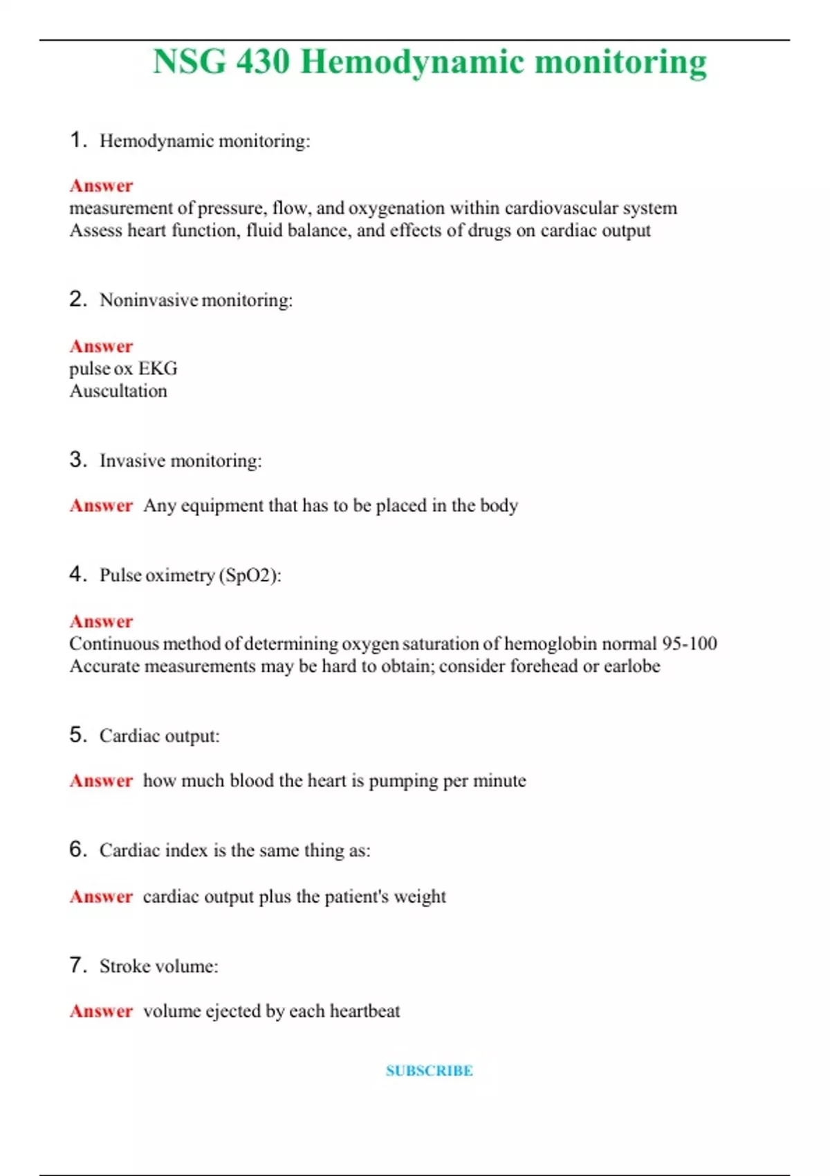 NSG 430 Hemodynamic monitoring (Latest 2024 / 2025) Questions & Answers with rationales
