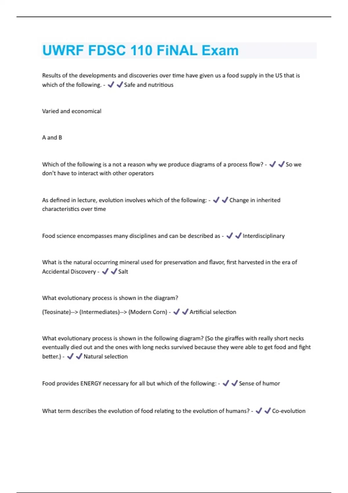 UWRF FDSC 110 FiNAL Exam Questions With Complete Solutions Graded A+
