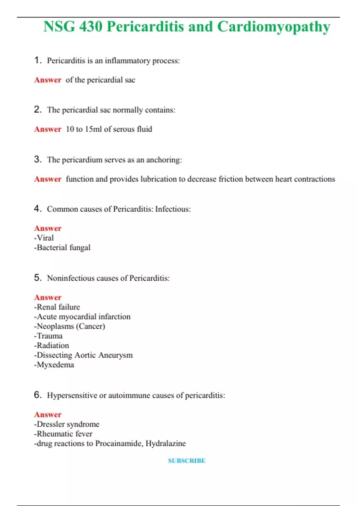 NSG 430 Pericarditis and Cardiomyopathy (Latest 2024 / 2025) Questions & Answers with rationales