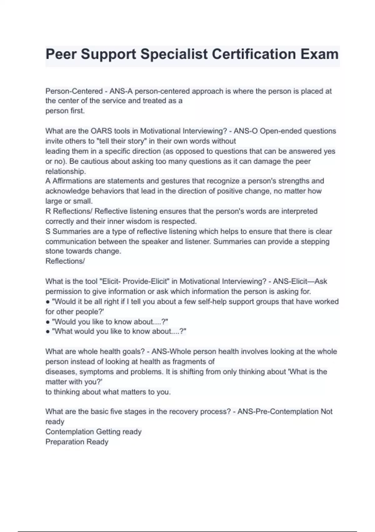 Peer Support Specialist Certification Exam