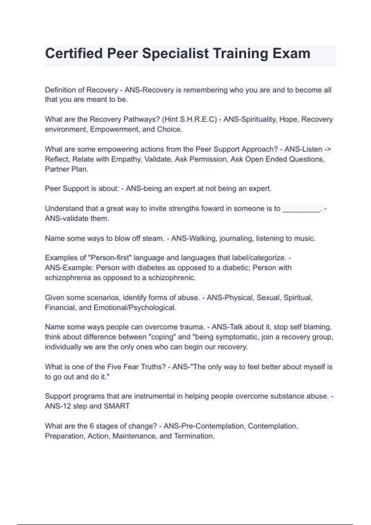 Certified Peer Specialist Training Exam