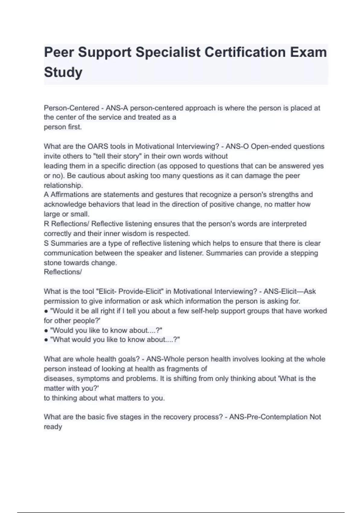 Peer Support Specialist Certification Exam Study