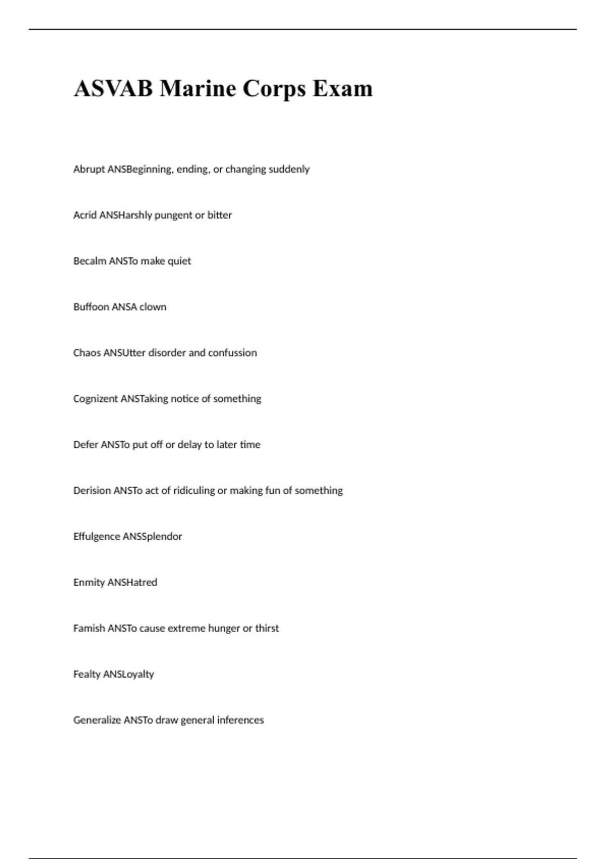 ASVAB Marine Corps Exam Questions and Answers 2024 Latest Edition