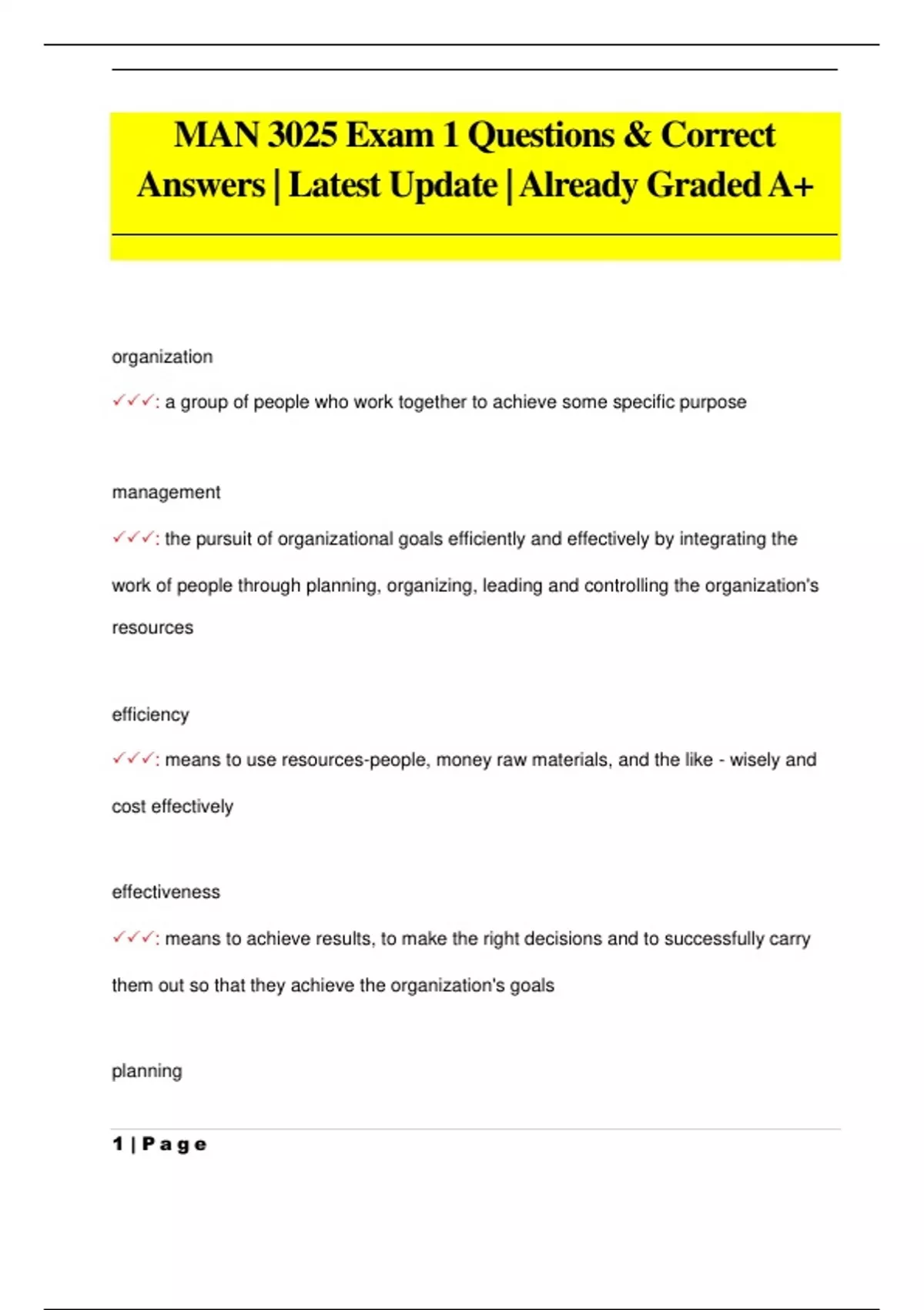 MAN 3025 Exam 1 Questions & Correct Answers | Latest Update |Already Graded A+