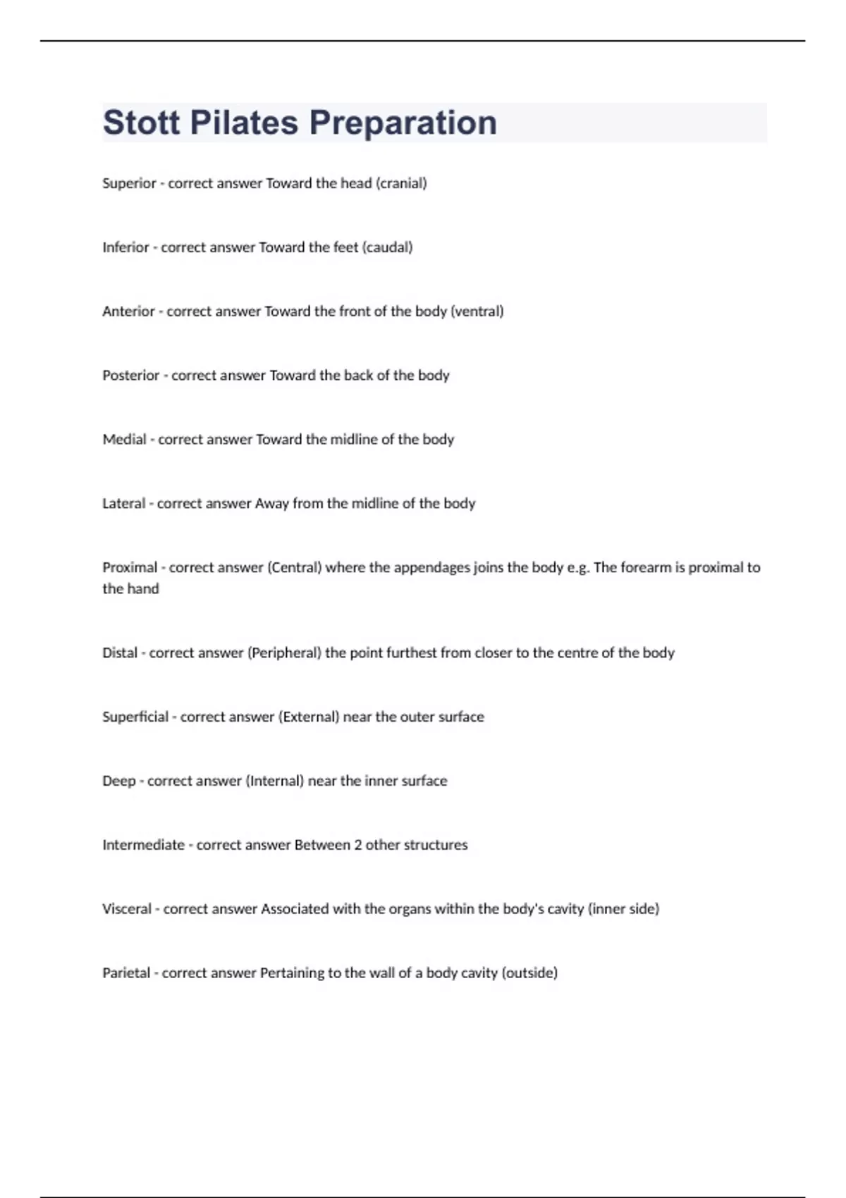Stott Pilates Preparation questions and answers already solved 2024