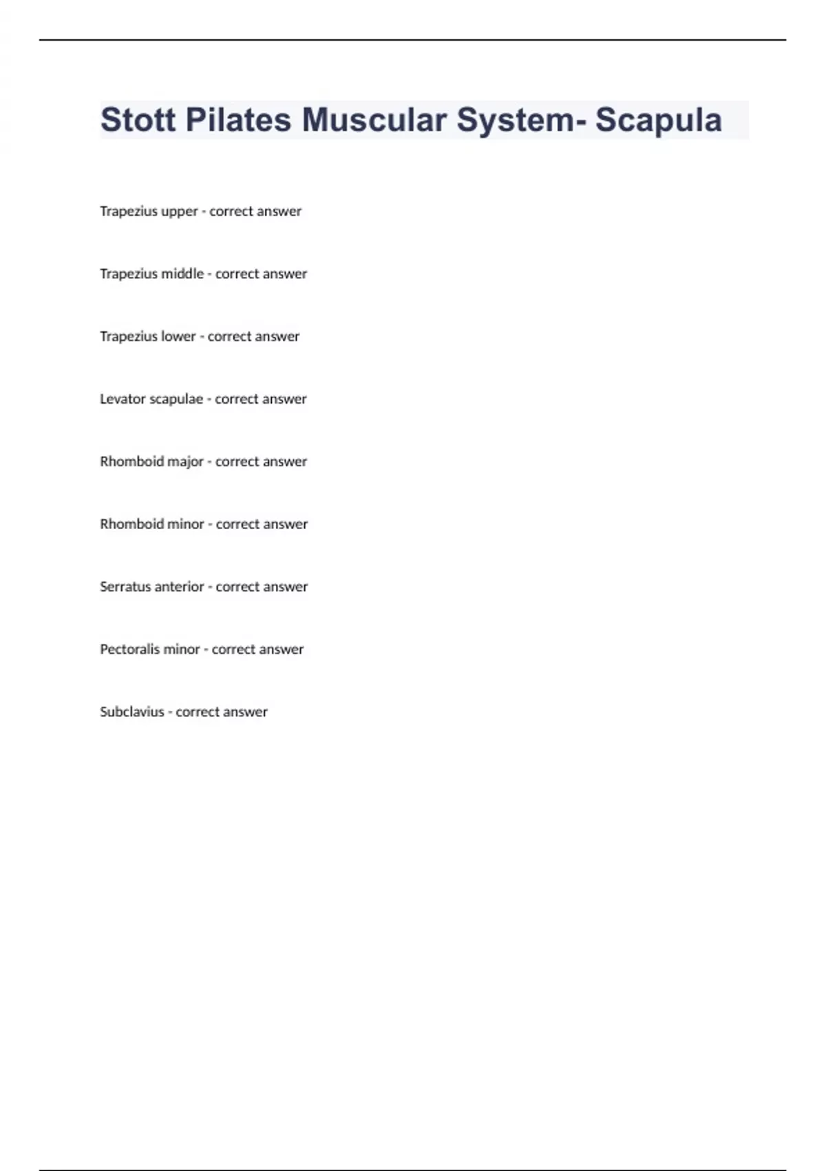 Stott Pilates Muscular System questions and answers already solved 2024