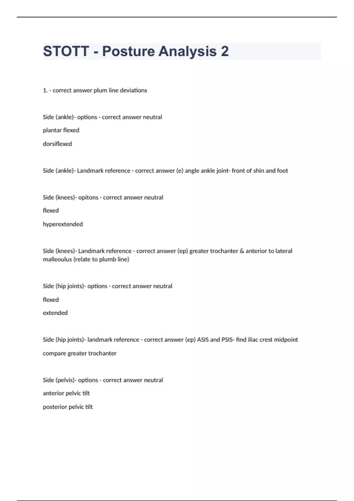 STOTT - Posture Analysis 2 questions with completed solutions 2024