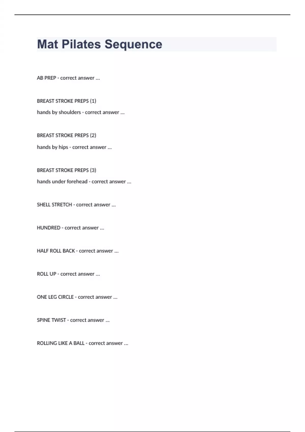 mat pilates sequence questions with complete solut